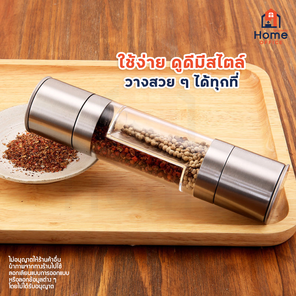 Home Office ขวดบดพริกไทย (สแตนเลส 2 หัว แบบ 2 in 1) มีฝาปิด เม็ดพริกไทย เมล็ดพริกไทย พริกไทยดำ พริกไทยขาว พริกไทย ขวดบด