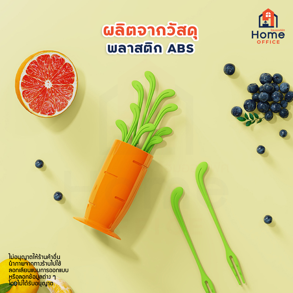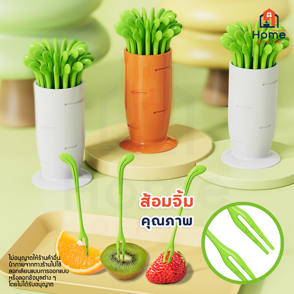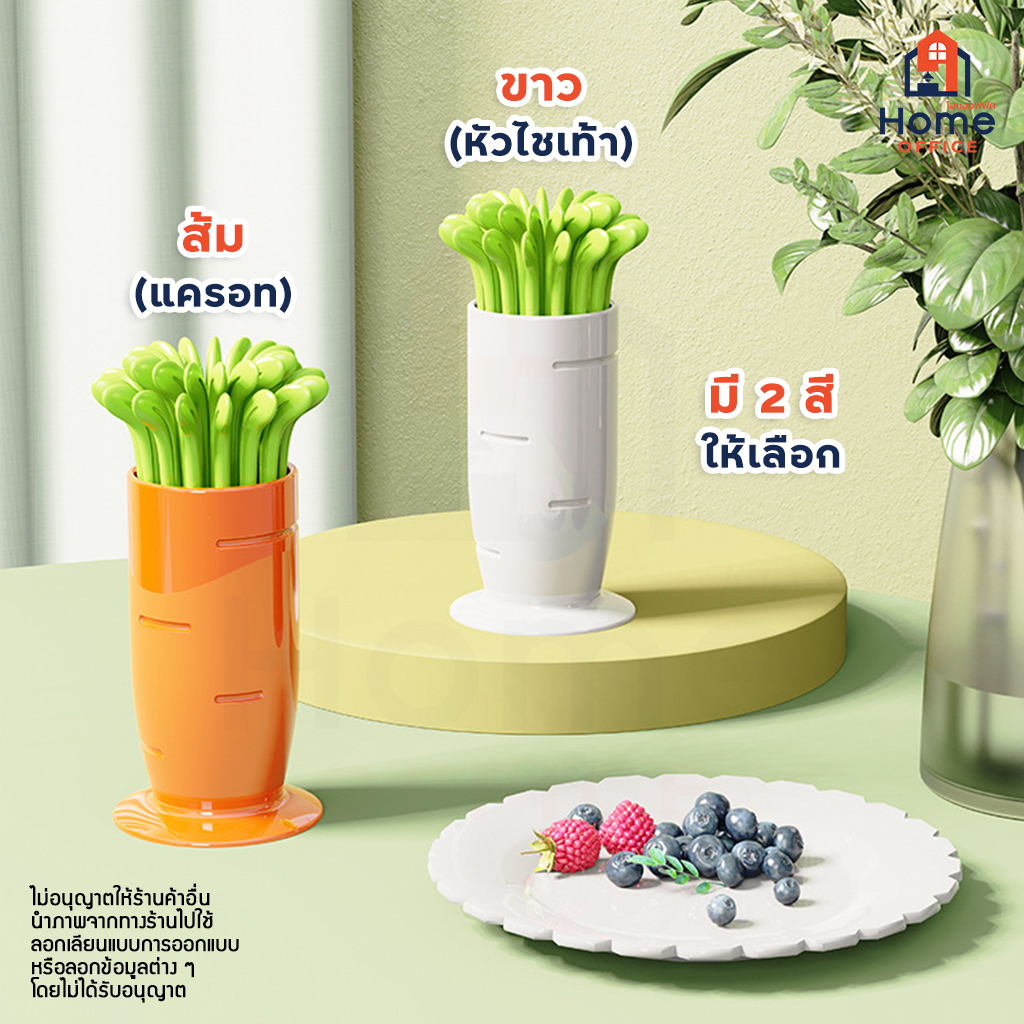 Home Office ชุดส้อมจิ้มขนมผลไม้ (พลาสติก ABS) พร้อมถ้วยทรงแครอทหัวไชเท้า ไม้จิ้มผลไม้ ที่จิ้มขนมพลาสติกพร้อมถ้วยเก็บ