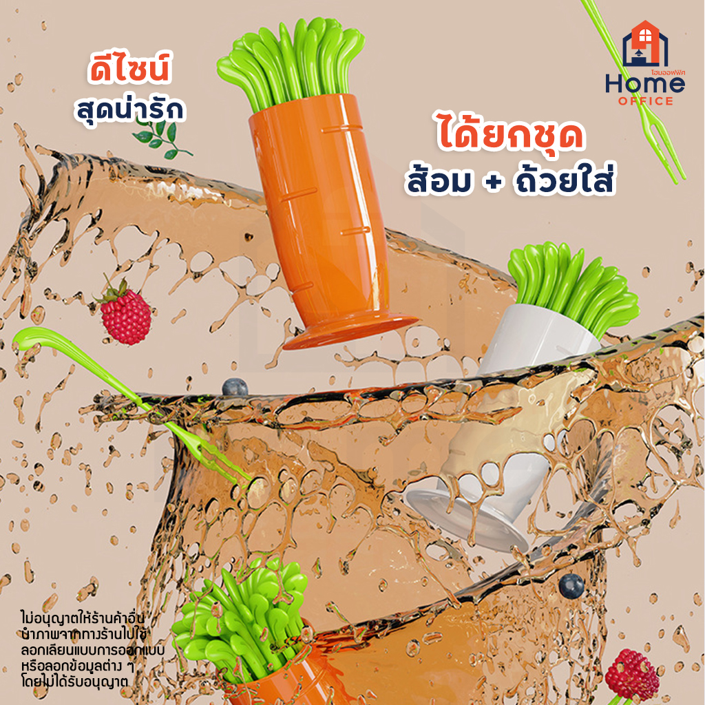 ✅ ส้อมจิ้มผลไม้ ขนม เค้ก พร้อมถ้วยเก็บรูปทรงแครอท และหัวไชเท้า ออกแบบอย่างมีสไตล์ น่าใช้งาน