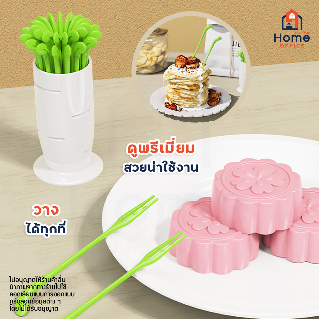 ✅ ปลายส้อมมี 2 ง่าม ออกแบบให้มีปุ่มเล็ก ๆ ทำให้จิ้มผลไม้ ขนม ฯลฯ แล้วไม่หลุดง่าย