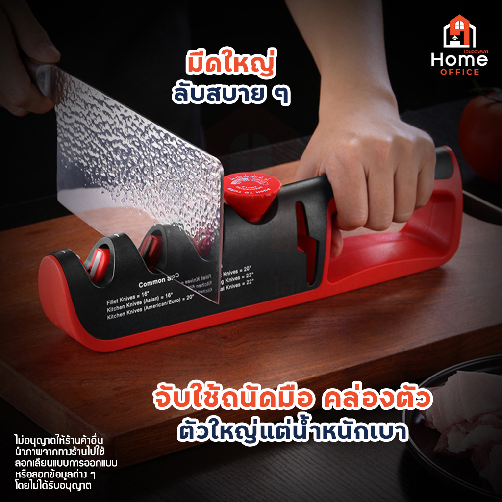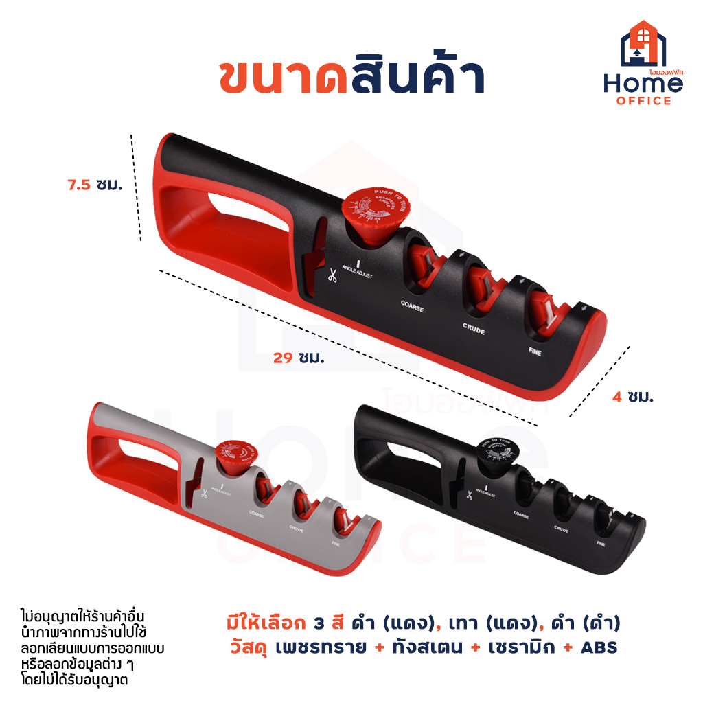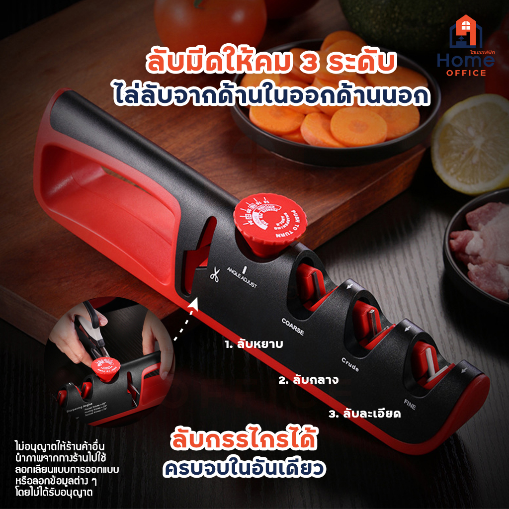 Home Office ที่ลับมีด (ปรับมุมลับมีดได้) 4 in 1 ลับได้ 3 ระดับ ลับกรรไกร 1 ช่อง ใช้ง่าย ลับง่าย อุปกรณ์ลับมีด แท่นลับมีด