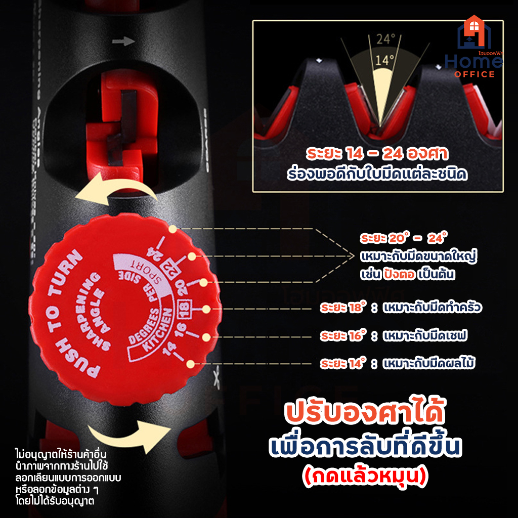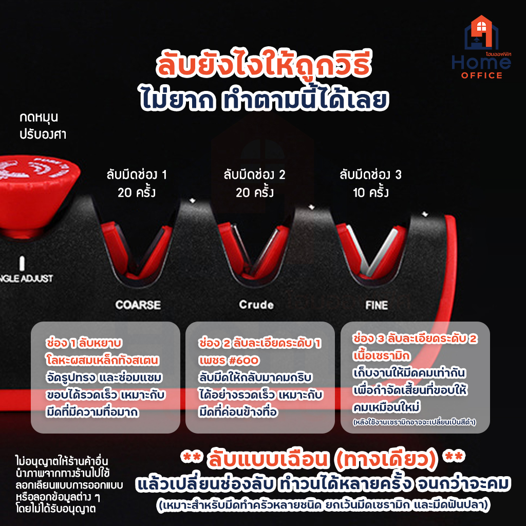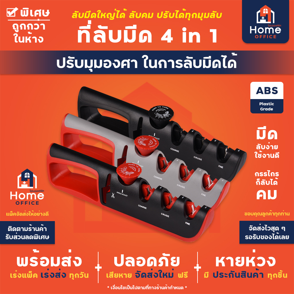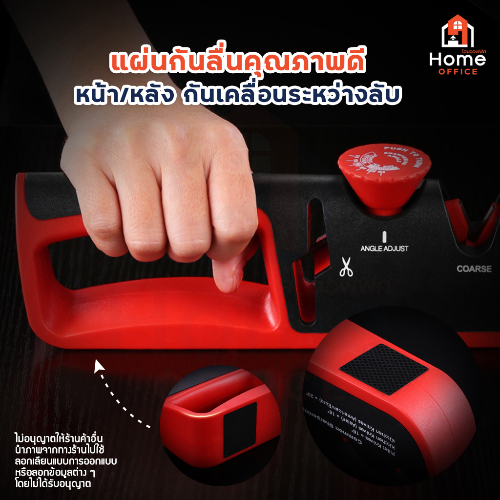 Home Office ที่ลับมีด (ปรับมุมลับมีดได้) 4 in 1 ลับได้ 3 ระดับ ลับกรรไกร 1 ช่อง ใช้ง่าย ลับง่าย อุปกรณ์ลับมีด แท่นลับมีด