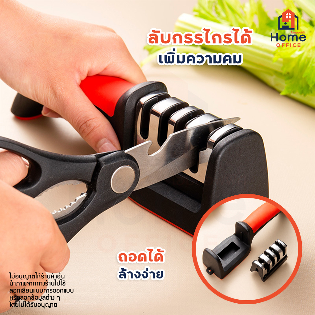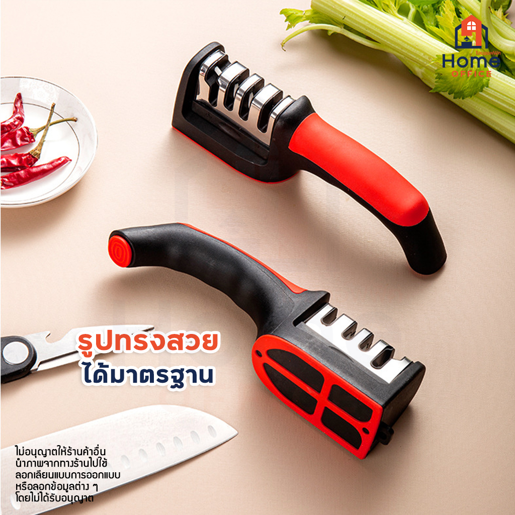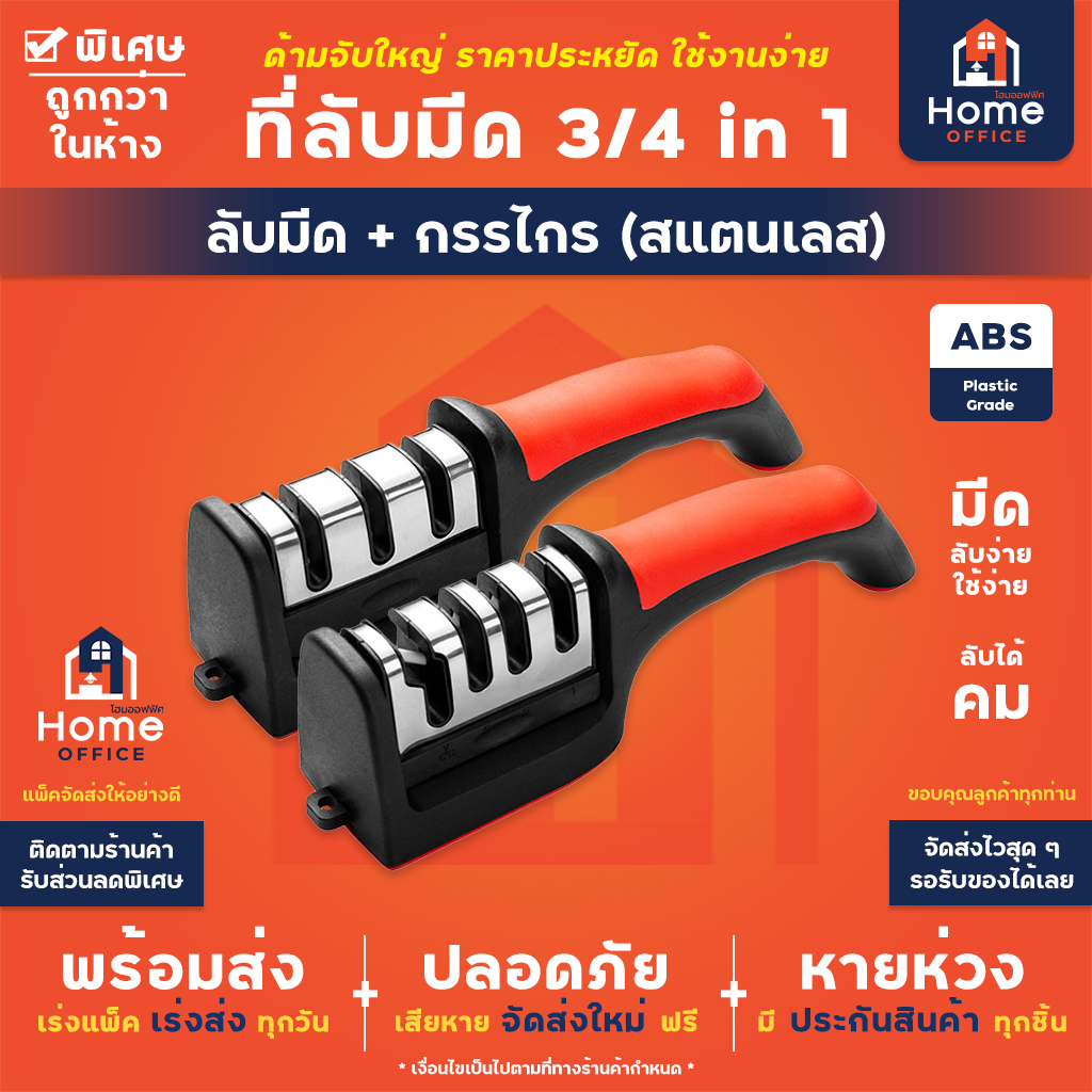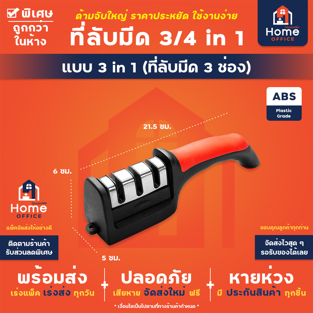 Home Office ที่ลับมีด 3-4 in 1 (ด้ามจับสีแดง) ใช้ง่าย ลับง่าย อุปกรณ์ลับมีด แท่นลับมีด มีด กรรไกร ปัง Sharpener