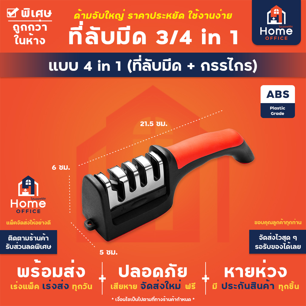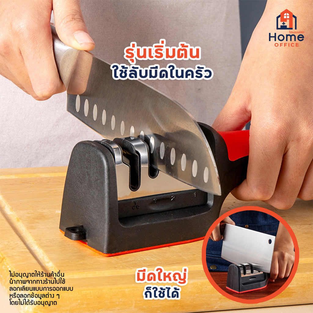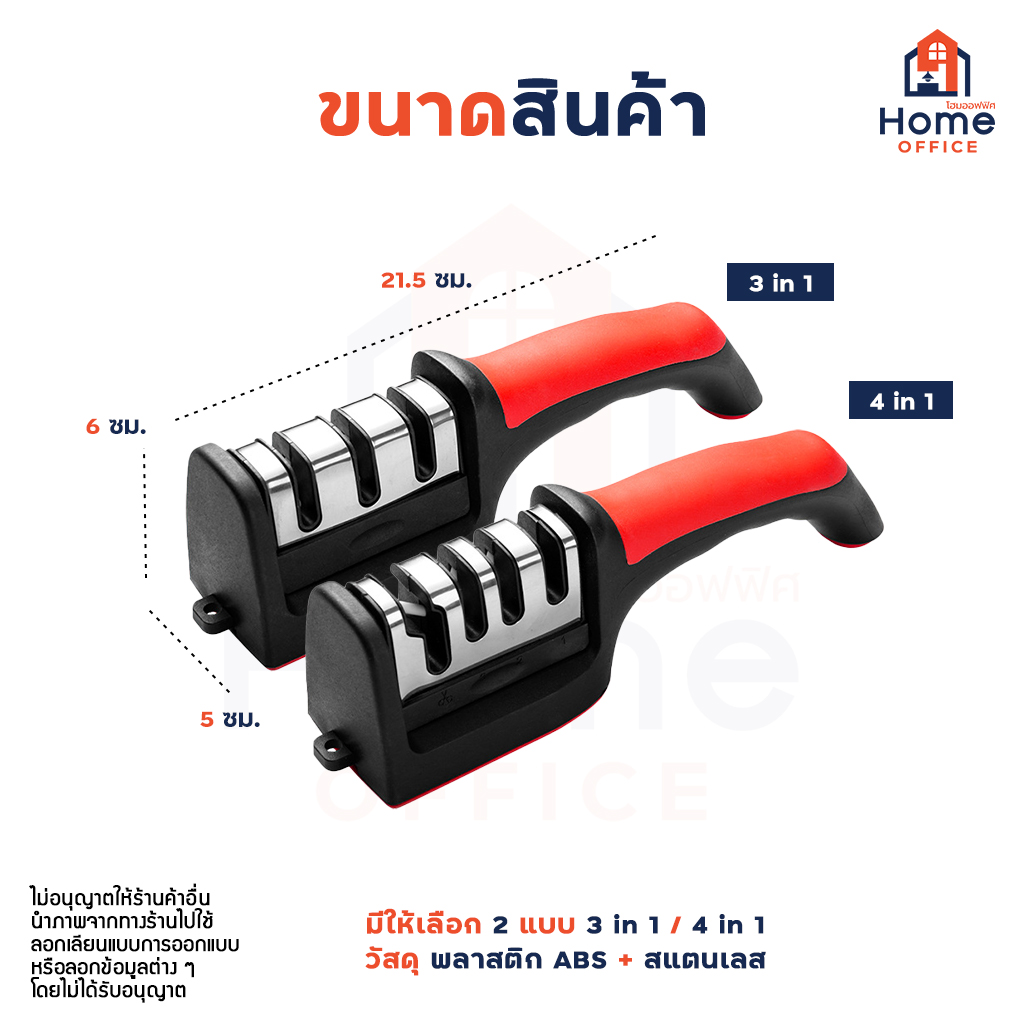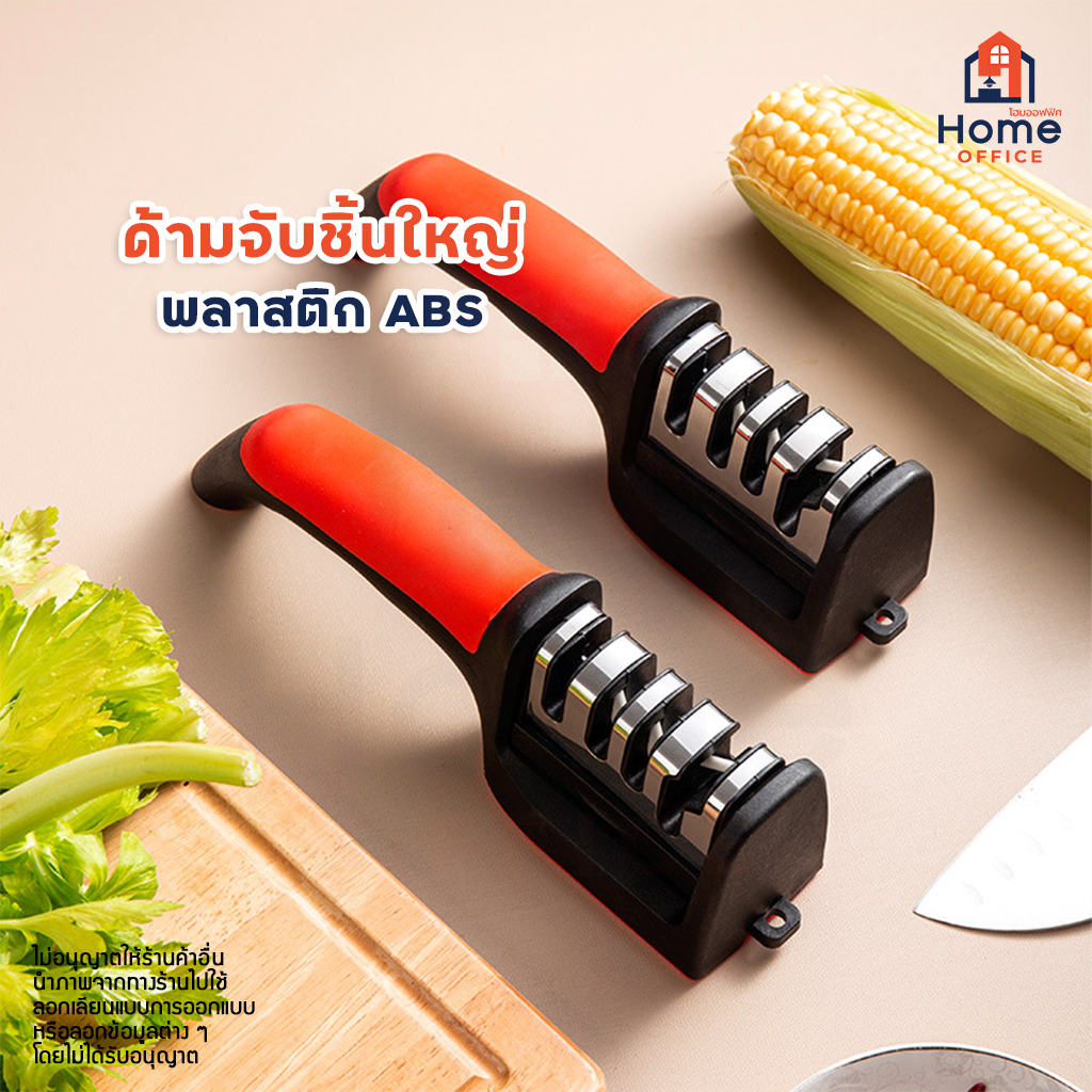 Home Office ที่ลับมีด 3-4 in 1 (ด้ามจับสีแดง) ใช้ง่าย ลับง่าย อุปกรณ์ลับมีด แท่นลับมีด มีด กรรไกร ปัง Sharpener