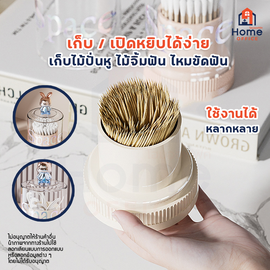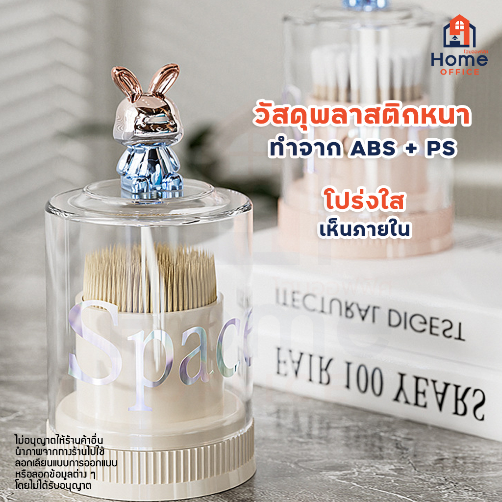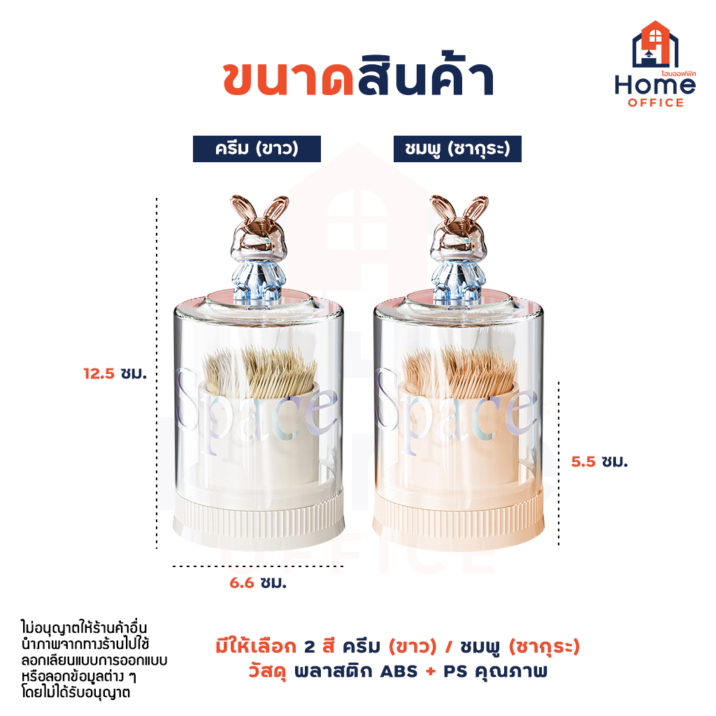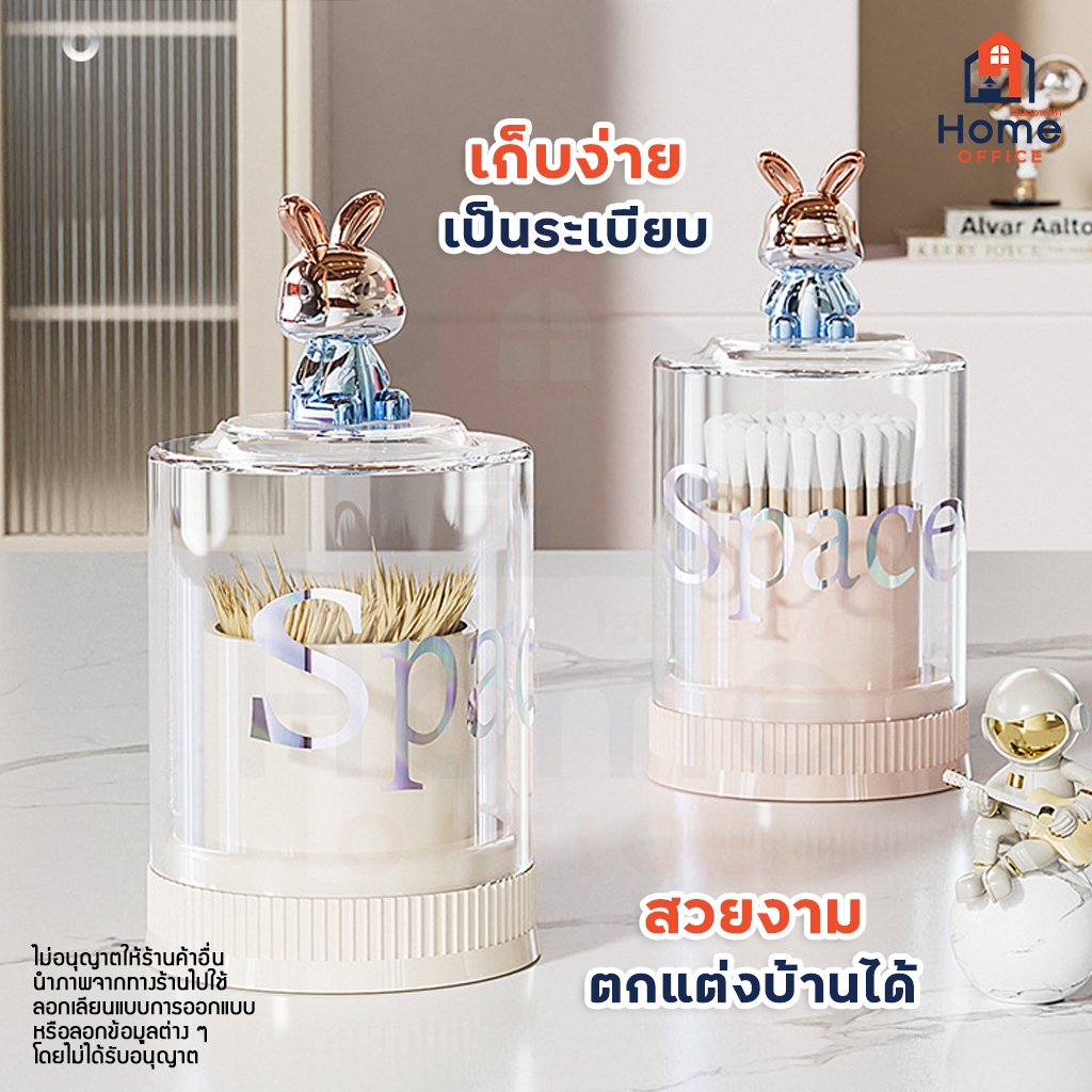 Home Office ที่เก็บไม้ปั่นหู (Space) ฝาครอบหัวกระต่าย ที่เก็บไม้จิ้มฟัน กล่องเก็บลำสีปั่นหู ที่ใส่ไม้ปั่นหู ลายกระต่าย