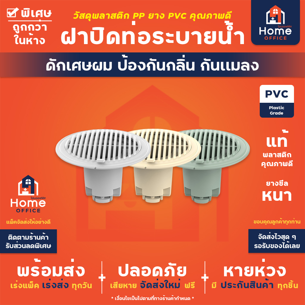 Home Office ฝาปิดท่อระบายน้ำกันแมลง (พลาสติก PP+PVC) ดักเศษผม ป้องกันกลิ่น ฝาปิดท่อในห้องน้ำ ห้องครัว ที่ปิดท่อระบายน้ำ
