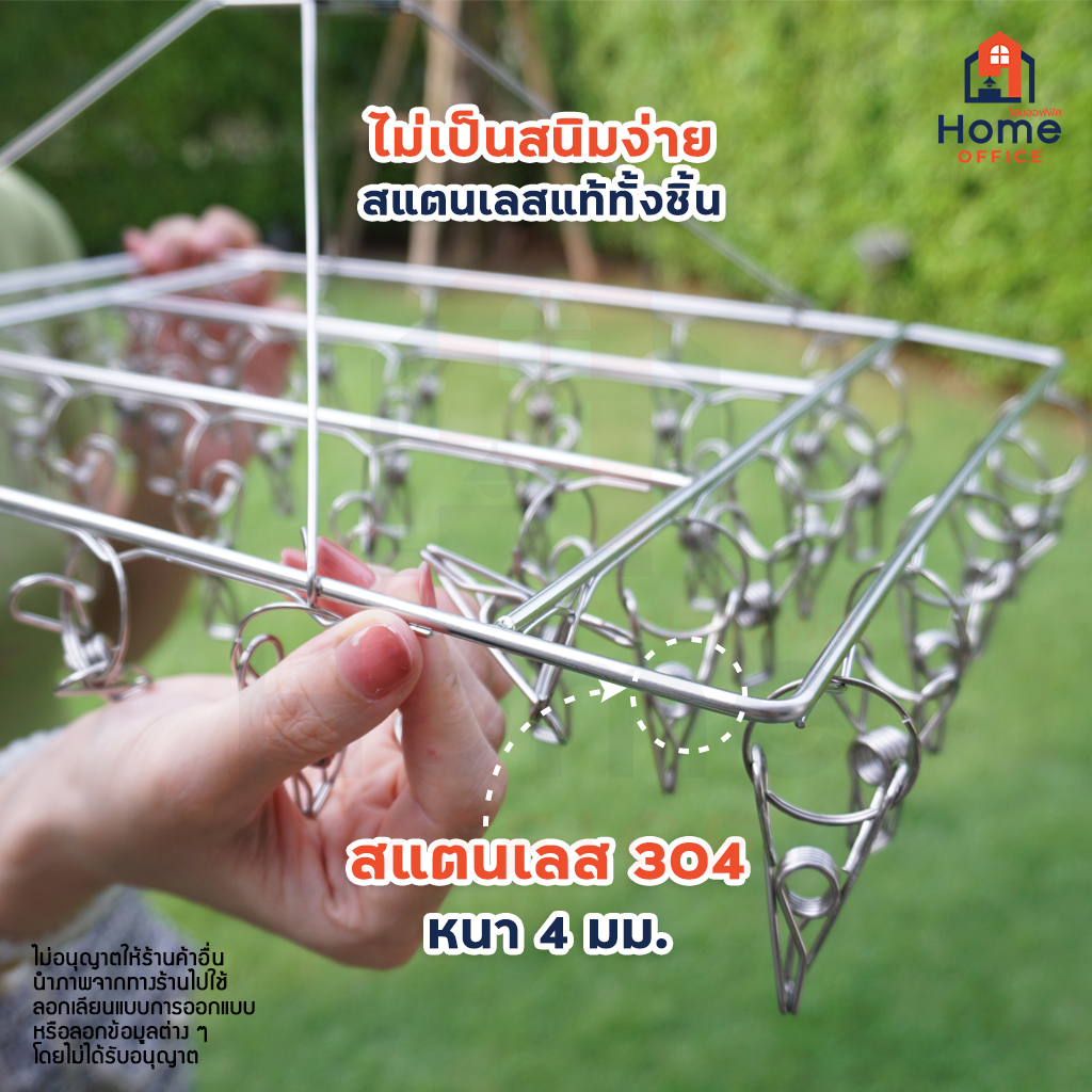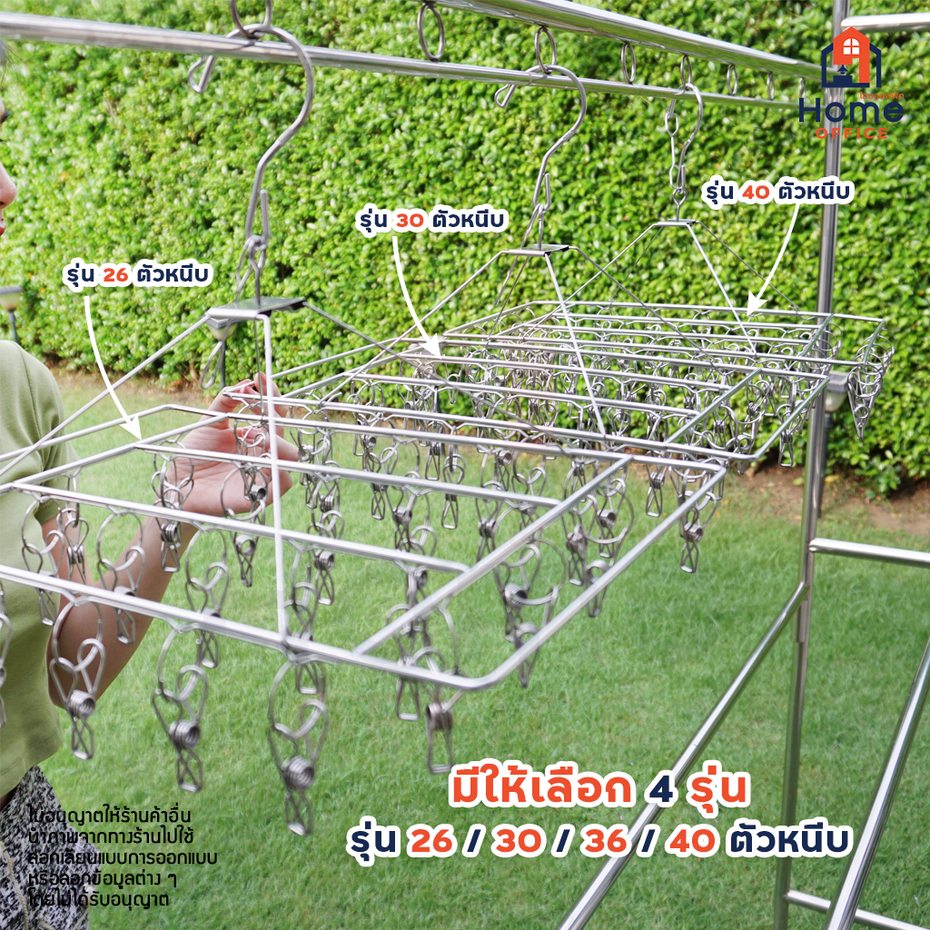 Home Office พวงหนีบผ้า (ทรงสี่เหลี่ยม) สแตนเลส SUS304 พวงตากผ้าสแตนเลส ที่ตากผ้า ถุงเท้า รุ่น 26 / 30 / 36 / 40 ตัวหนีบ