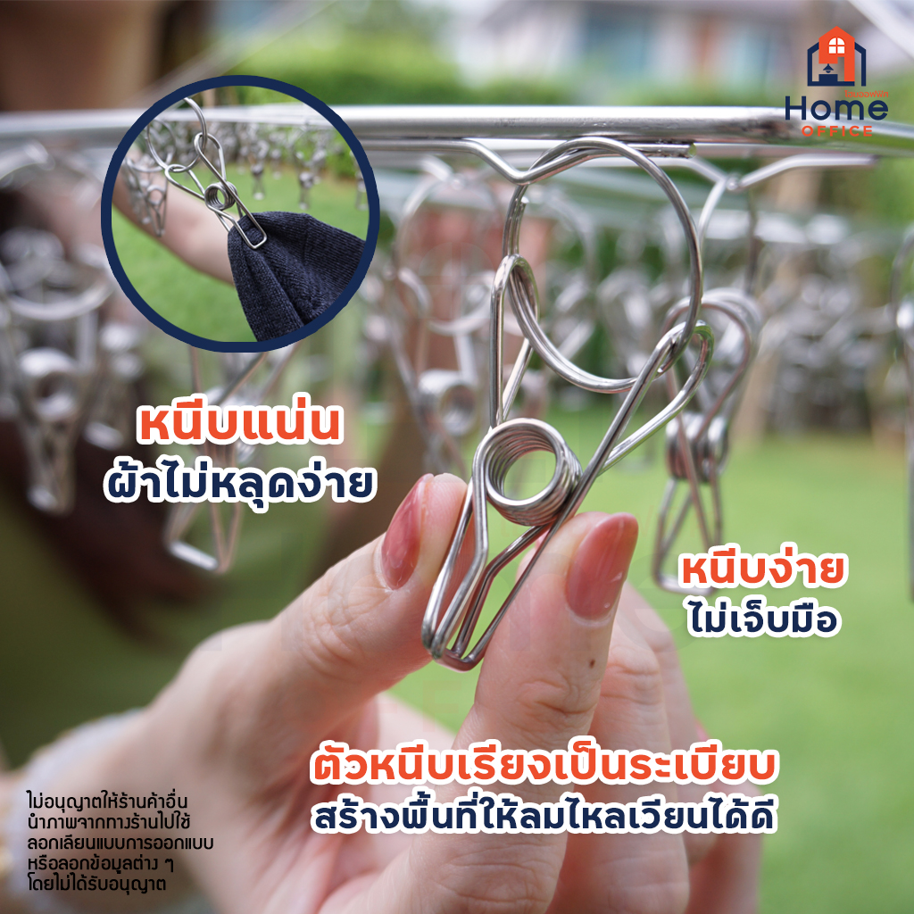 เขียนรีวิวสินค้า “Home Office พวงหนีบผ้า (ทรงสี่เหลี่ยม) สแตนเลส SUS304 พวงตากผ้าสแตนเลส ที่ตากผ้า ถุงเท้า รุ่น 26 / 30 / 36 / 40 ตัวหนีบ”