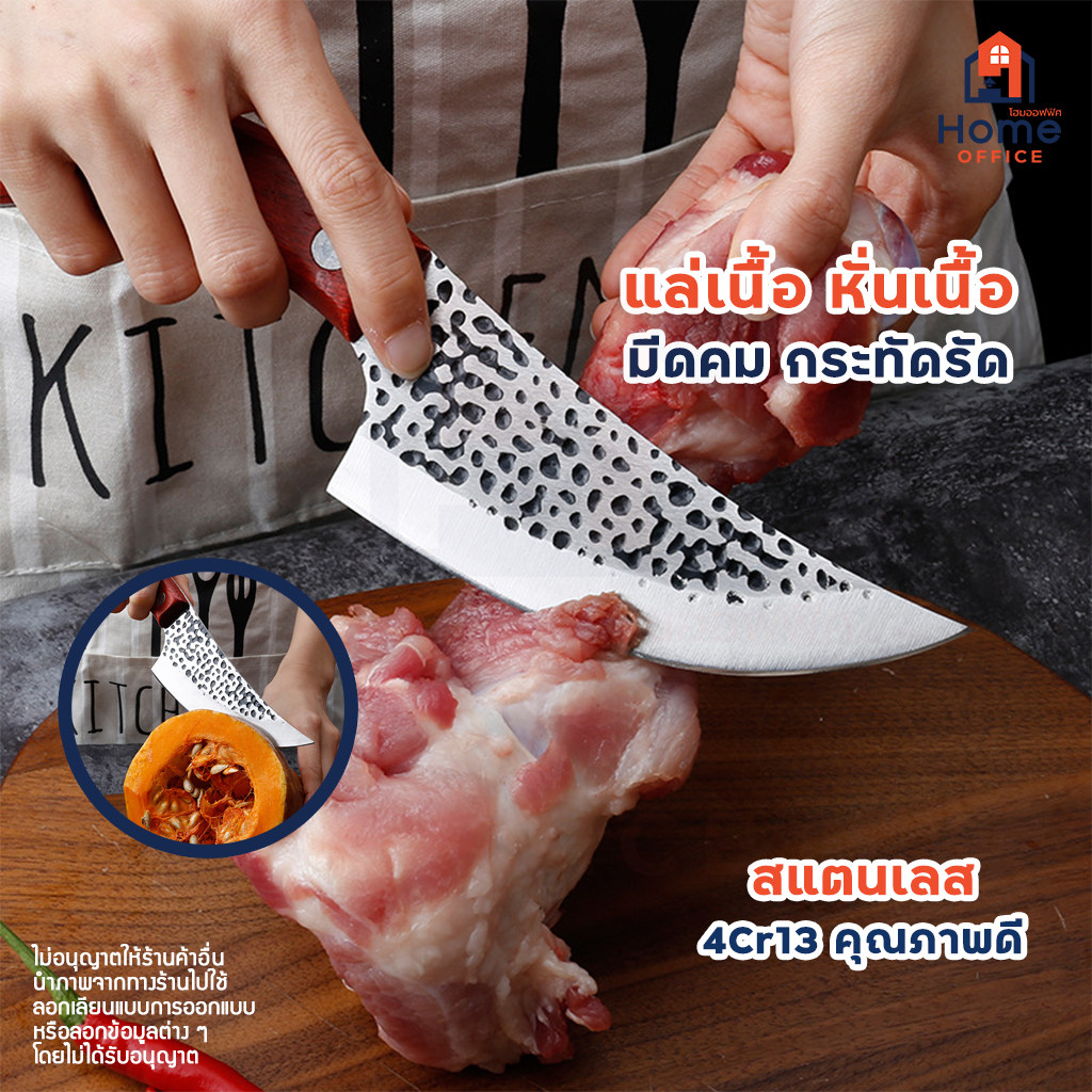 Home Office มีดแล่เนื้อ (ด้ามไม้โรสวูด) เนื้อไม้แดง สแตนเลส 4Cr13 เกรดอาหาร มีดคมมาก มีดหั่นเนื้อ มีดตัดกระดูก มีดครัว