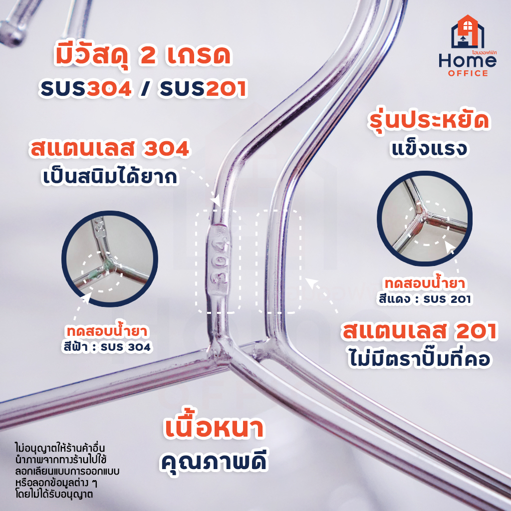 🚩 สแตนเลส 304 จะมีปั๊มคำว่า 304 ที่คอของไม้แขวนทุกชิ้น