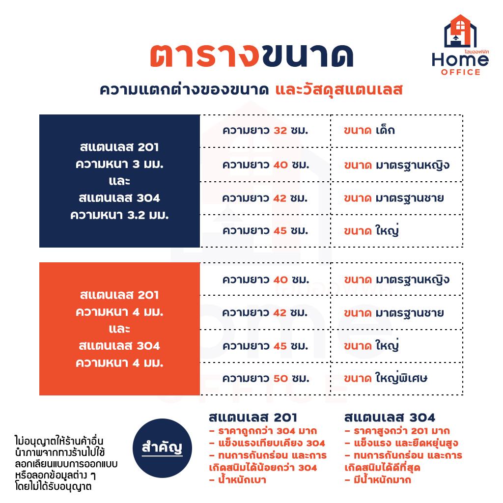 สแตนเลส 201 มีให้เลือก 2 รุ่น แต่ละรุ่นมีให้เลือก 4 ขนาด