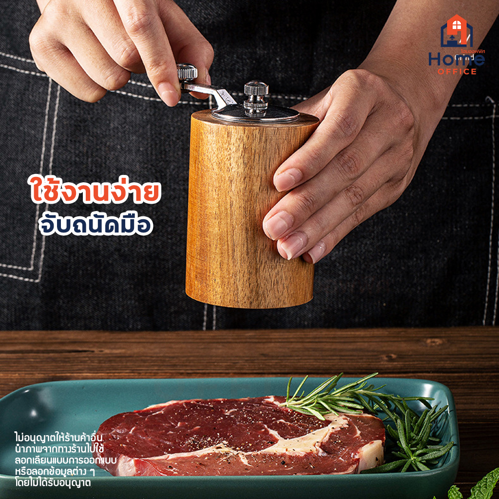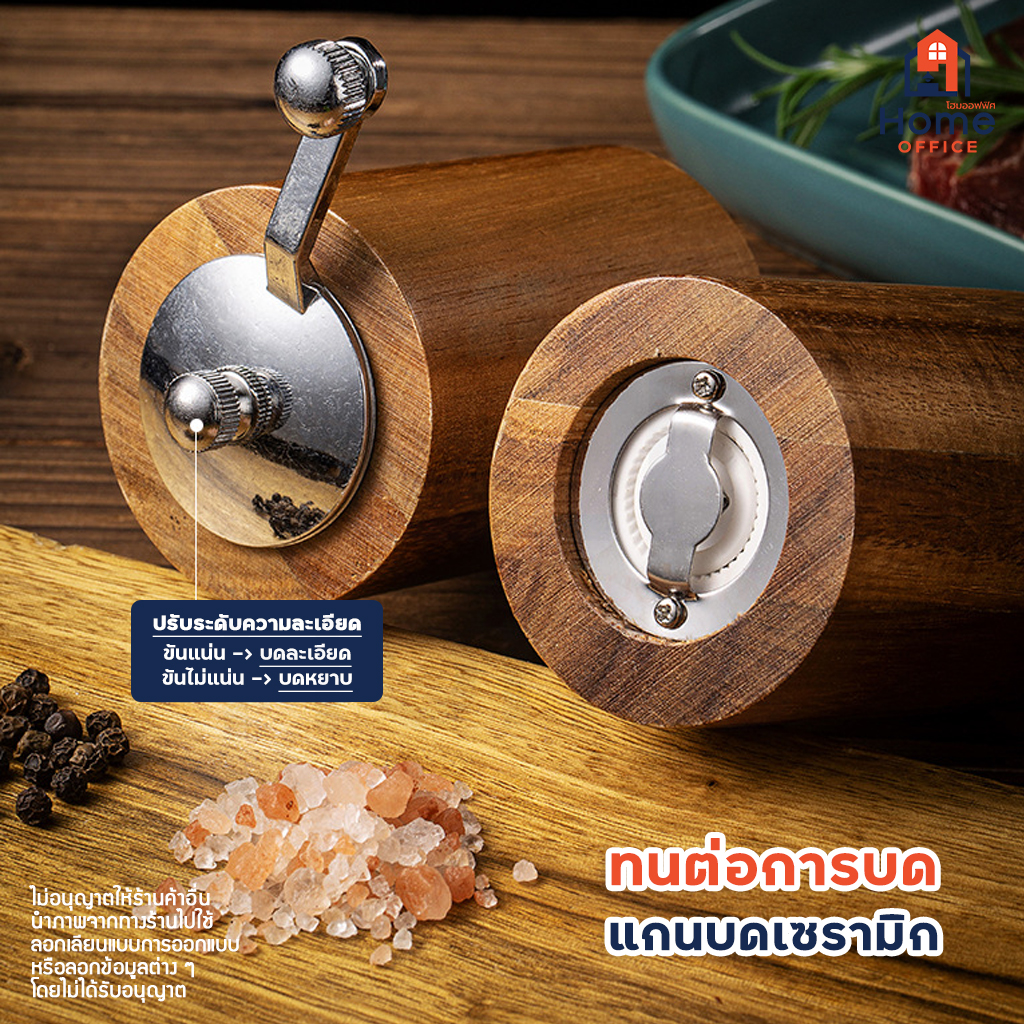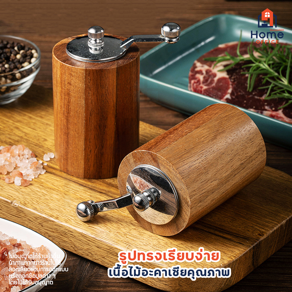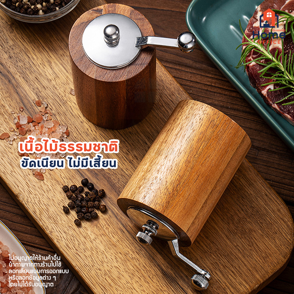 Home Office ขวดบดพริกไทย (ทรงกระบอกสั้น) เนื้อไม้อะคาเซีย แกนบดเซรามิก ขวดบดพริกไทยไม้ ที่บดพริกไทย ถั่ว งา