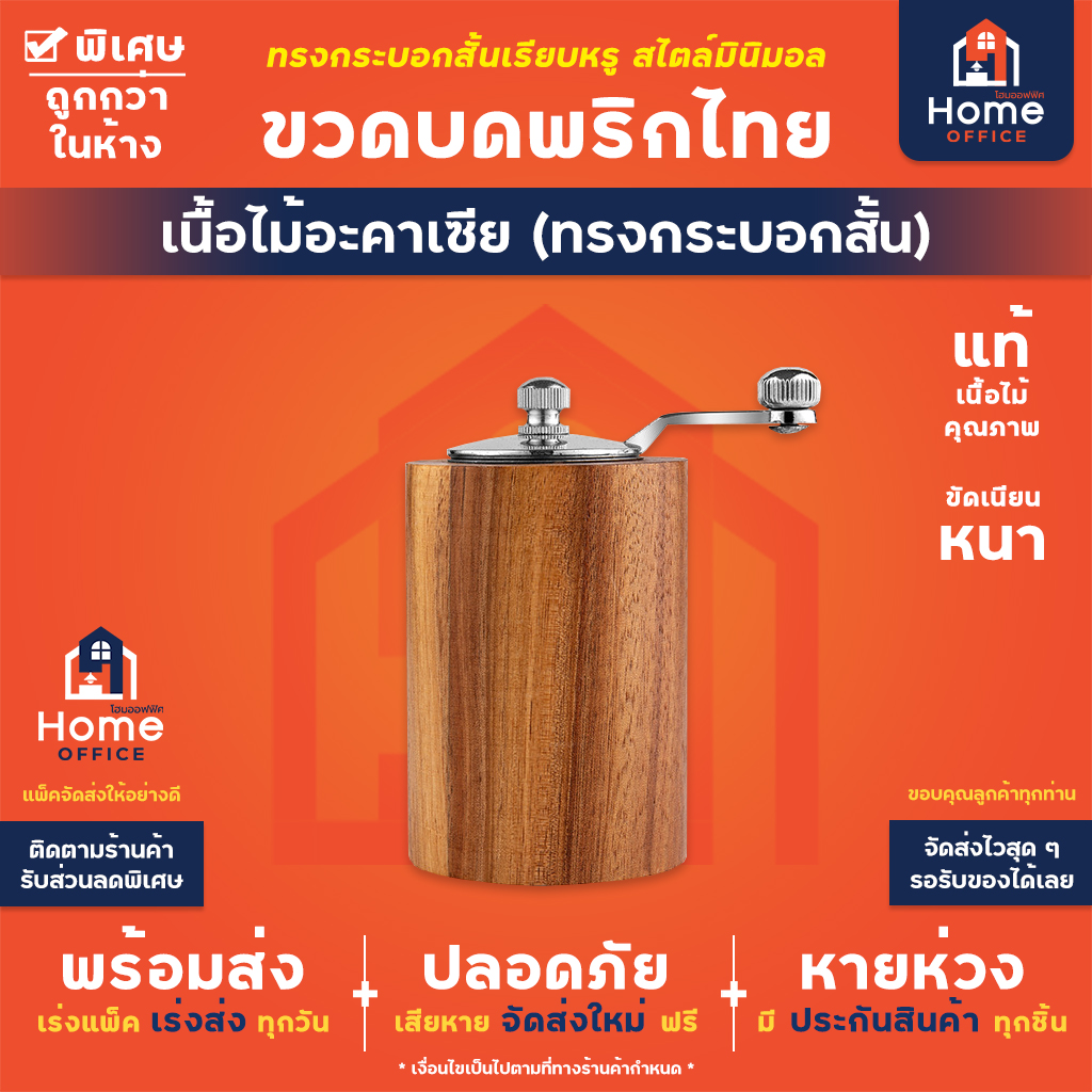 เขียนรีวิวสินค้า “Home Office ขวดบดพริกไทย (ทรงกระบอกสั้น) เนื้อไม้อะคาเซีย แกนบดเซรามิก ขวดบดพริกไทยไม้ ที่บดพริกไทย ถั่ว งา”