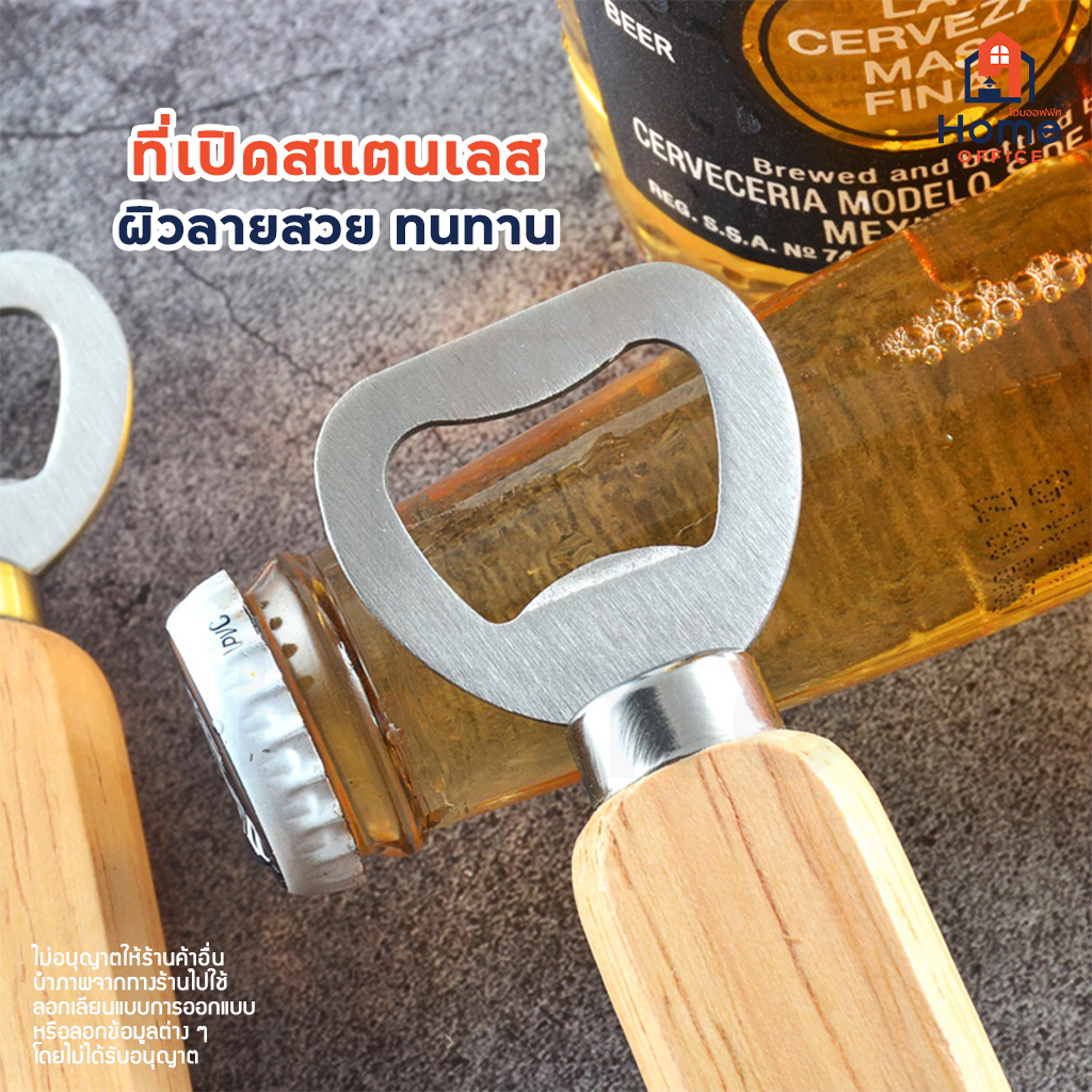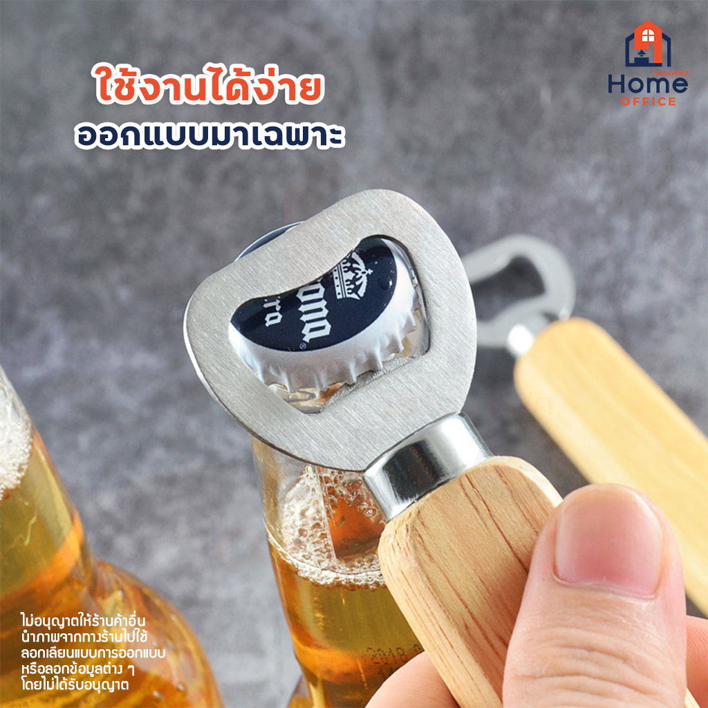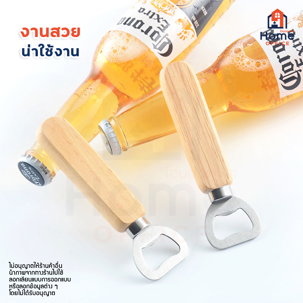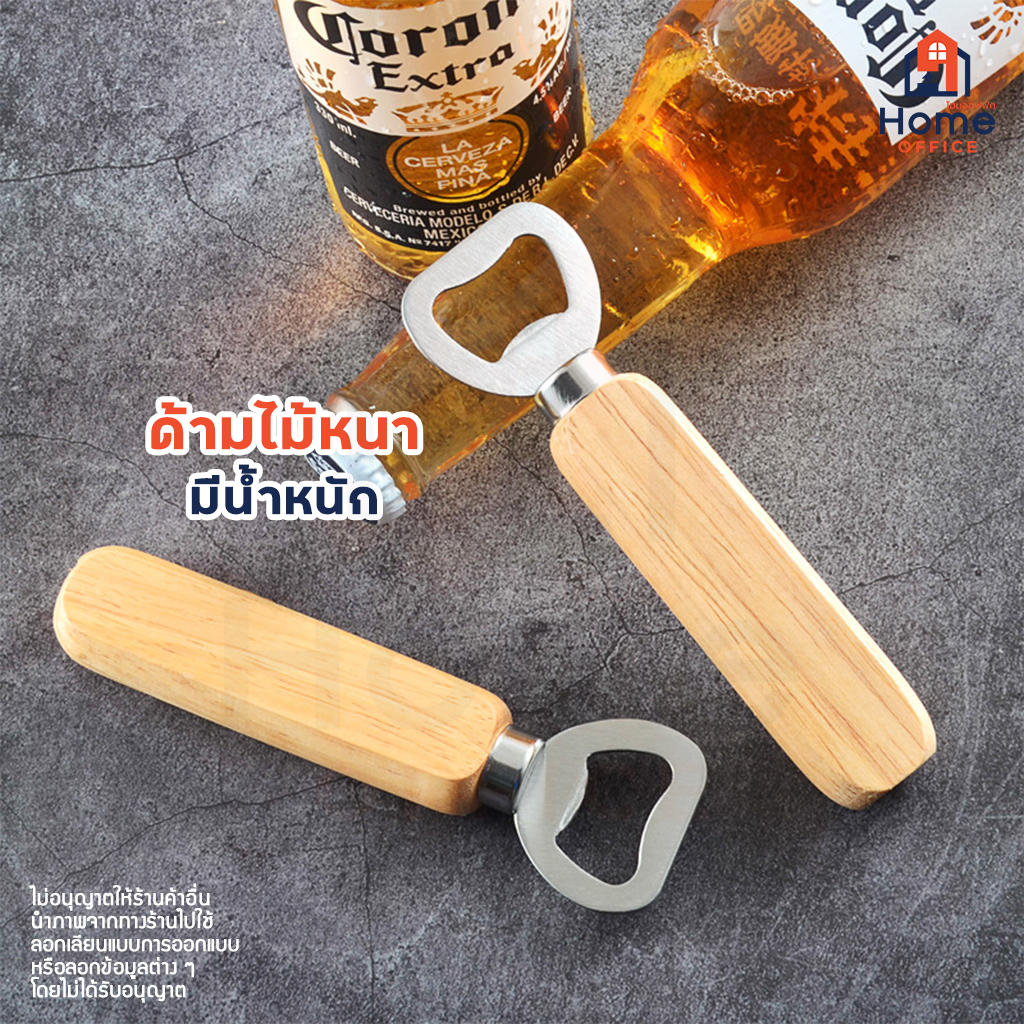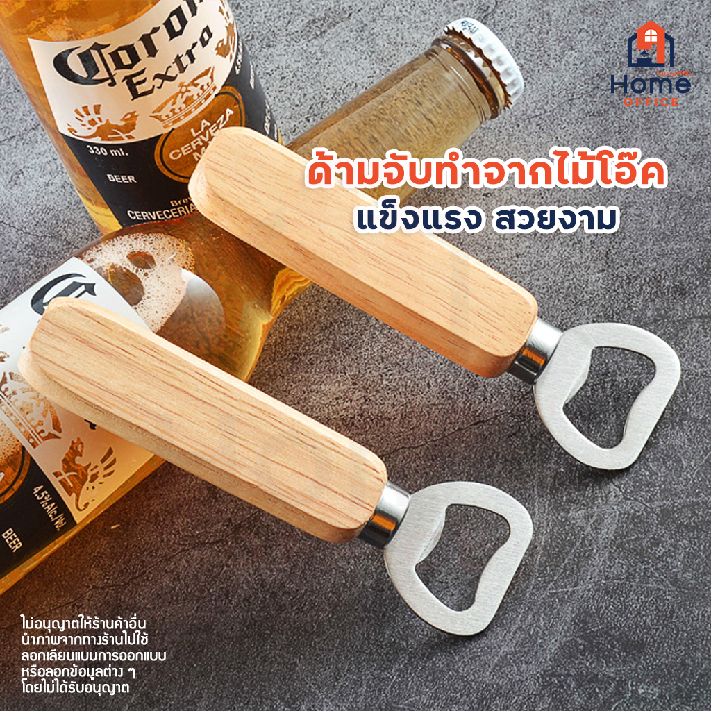 Home Office ที่เปิดขวดด้ามไม้ (หัวเปิดสแตนเลส) ด้ามจับไม้โอ๊ค สวยงาม แข็งแรง ที่เปิดฝาขวด ที่เปิดน้ำอัดลม ที่เปิดฝากลม