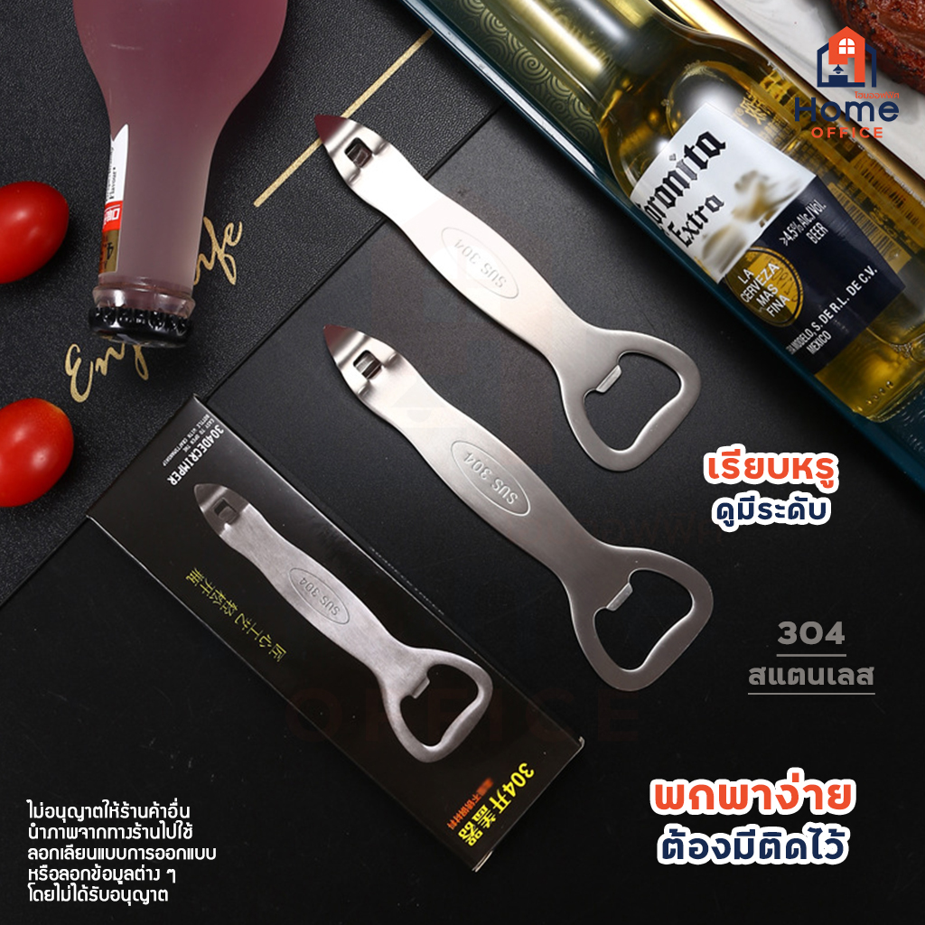 Home Office ที่เปิดขวด 2 ด้าน (สแตนเลส 304 แท้) แบบ 2 in 1 หนา แข็งแรง มีน้ำหนัก พกไปได้ทุกที่ อุปกรณ์เปิดฝาขวด
