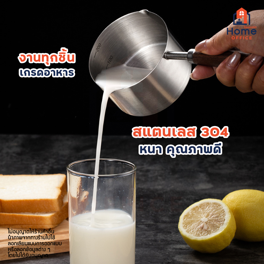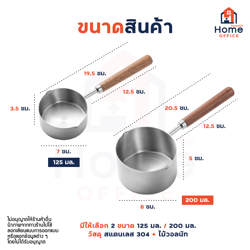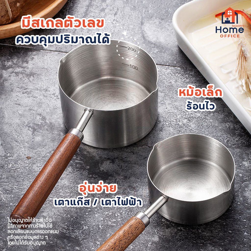 Home Office หม้อละลายเนย (สแตนเลส 304) ด้ามจับไม้วอลนัท หม้อสแตนเลสเล็ก หม้ออุ่นซอส อุ่นนม ละลายช็อคโกแลต 125-200 มล.