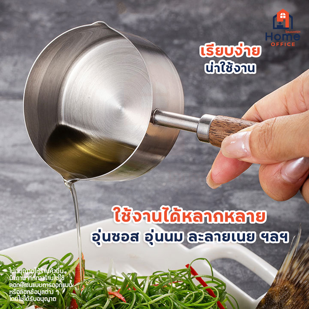 🔥 หม้อละลายเนย (สแตนเลส 304) ด้ามจับไม้วอลนัท