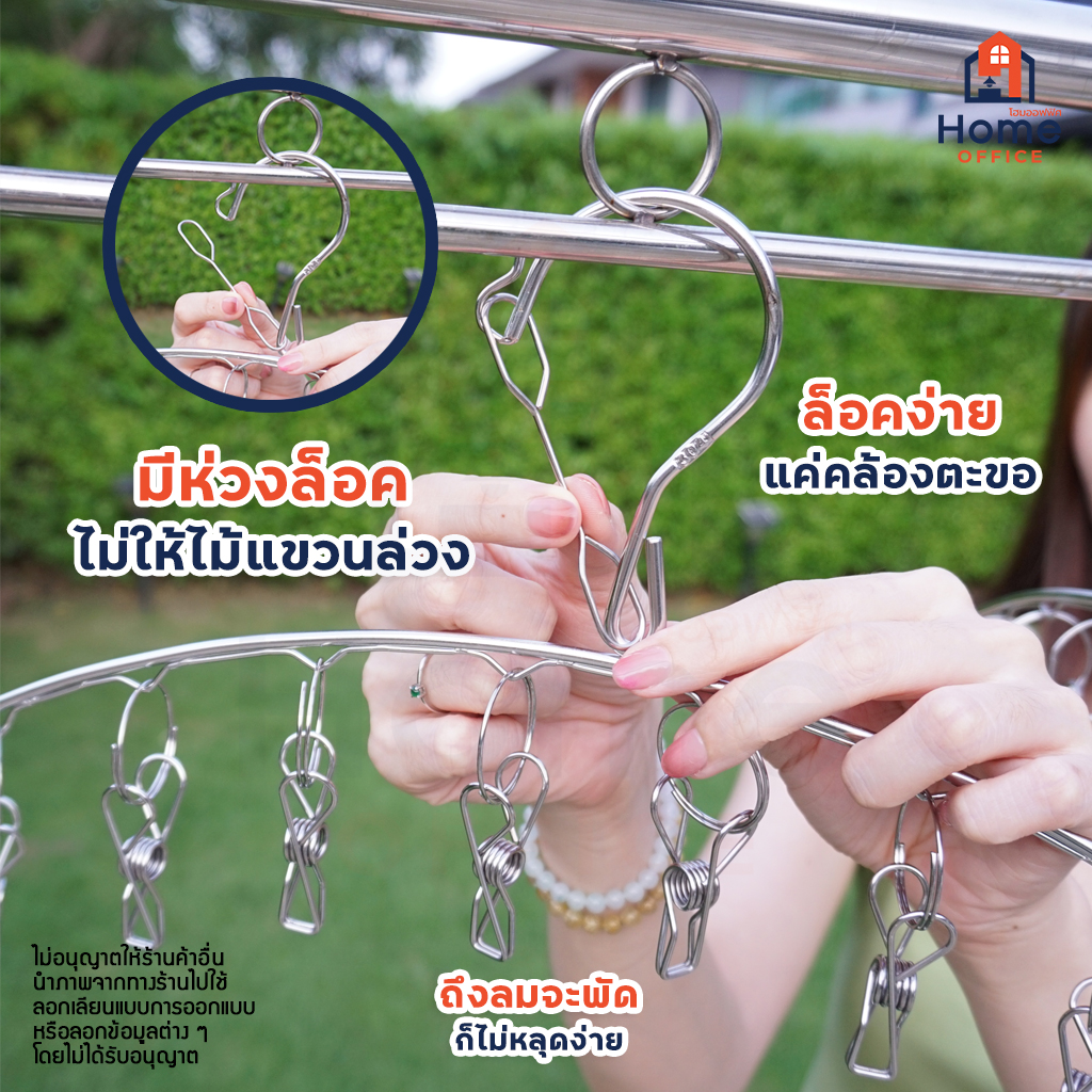 🔥 มีห่วงล็อค เพื่อไม่ให้ไม้แขวนหนีบปลิว หลุด หรือล่วงจากราวตากผ้า ล็อคง่ายเพียงแค่คล้องตะขอ
