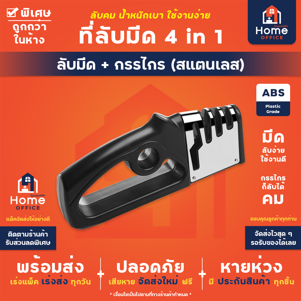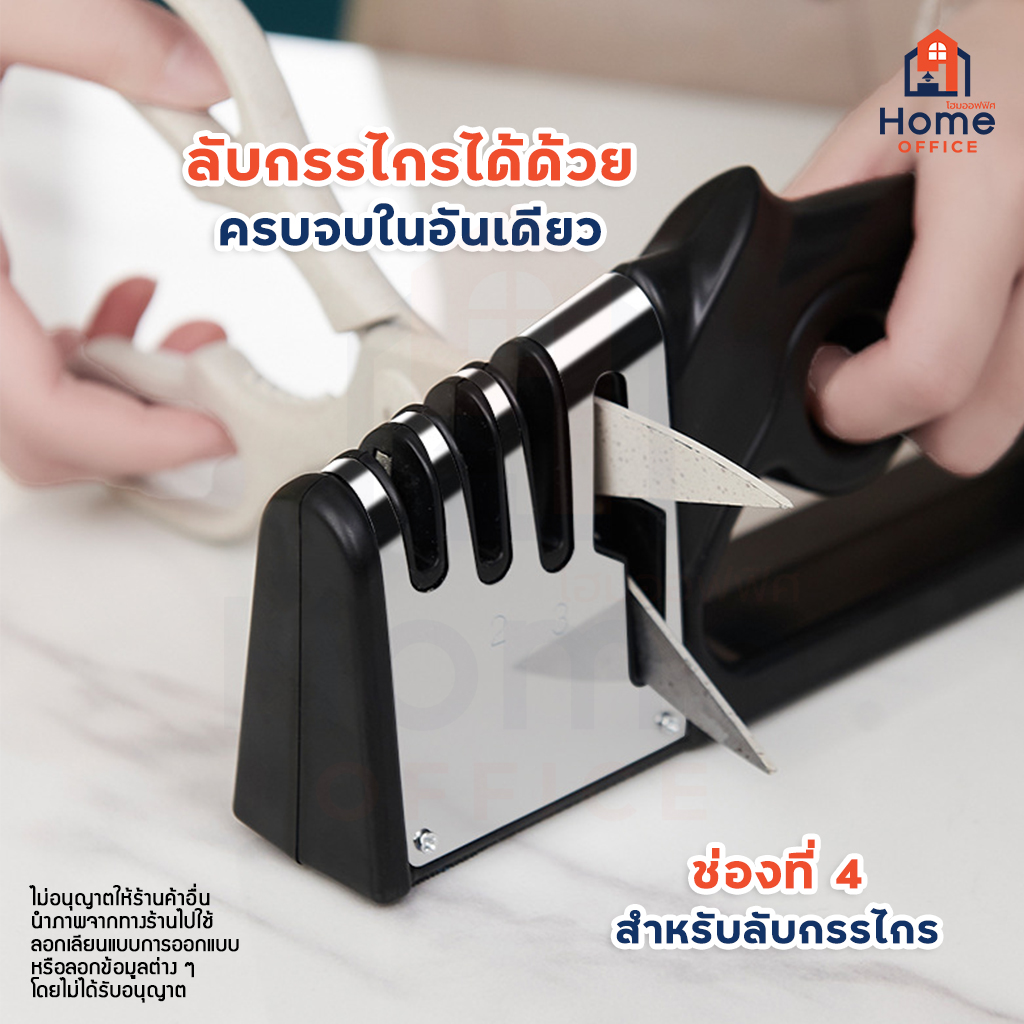 Home Office ที่ลับมีด 4 in 1 ลับได้ 3 ระดับ ลับกรรไกร 1 ช่อง ใช้ง่าย ลับง่าย อุปกรณ์ลับมีด แท่นลับมีด Sharpener