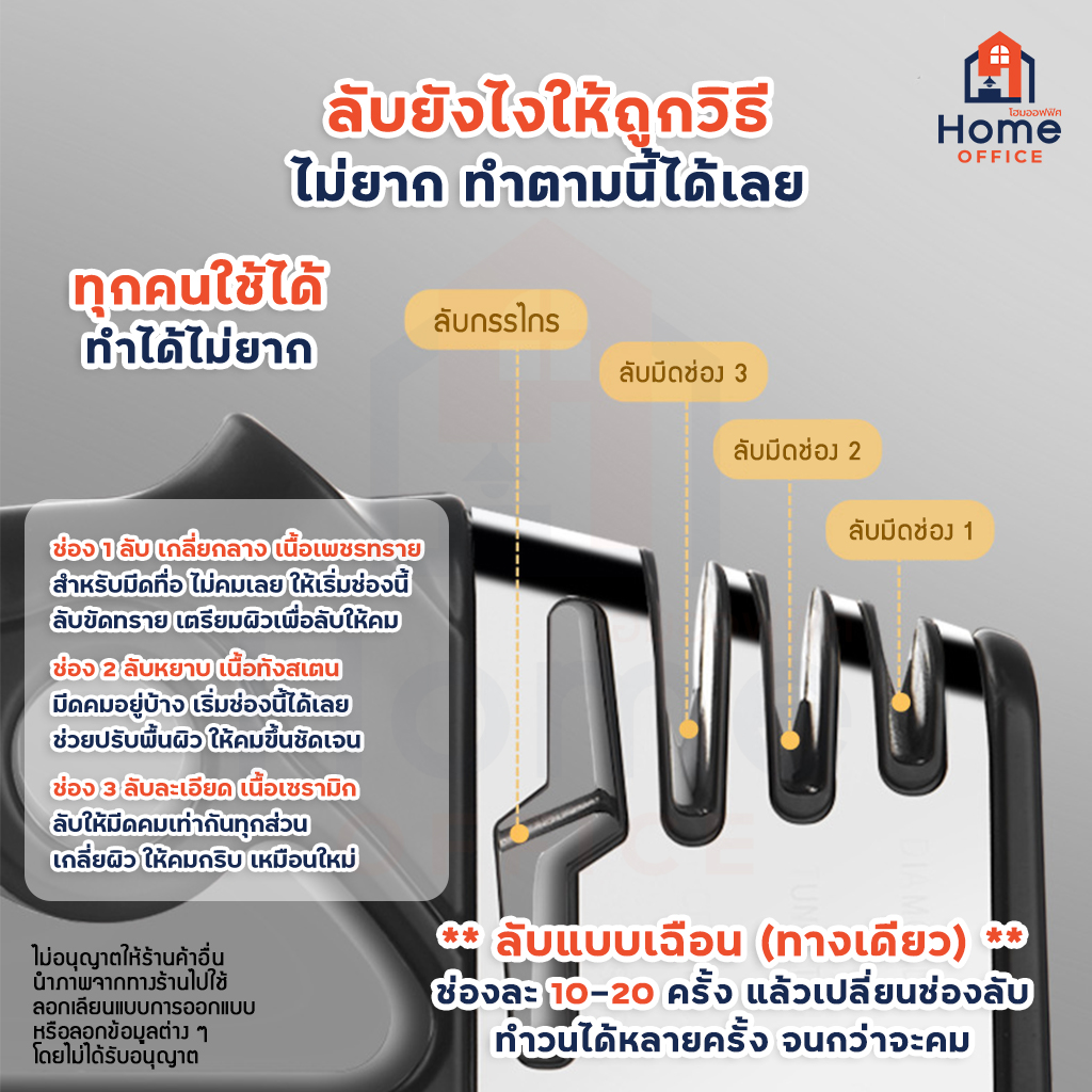 🚩 กรณีคุณลูกค้าไม่เคยใช้งานที่ลับมีดแบบนี้มาก่อน ให้ดูคุณสมบัติช่องลับมีดอย่างละเอียดก่อนสั่งซื้อ เพื่อนำไปใช้จริงได้อย่างถูกต้อง และเข้าใจในตัวสินค้า
