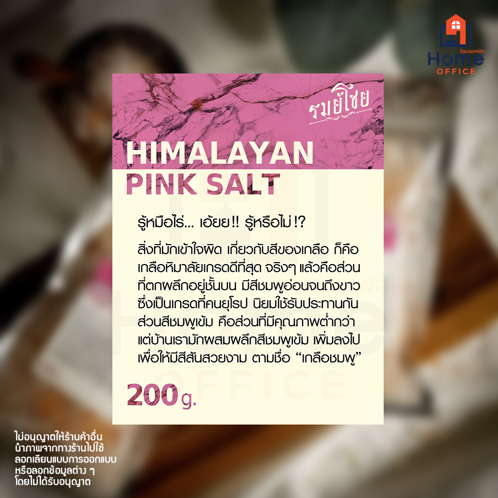 Home Office เกลือชมพู (รมย์โชย) 200 กรัม เกรดยุโรป เน้นขาว-ชมพูอ่อน (Himalayan Pink Salt) เกลือหิมาลายัน เกลือเม็ด เกลือ