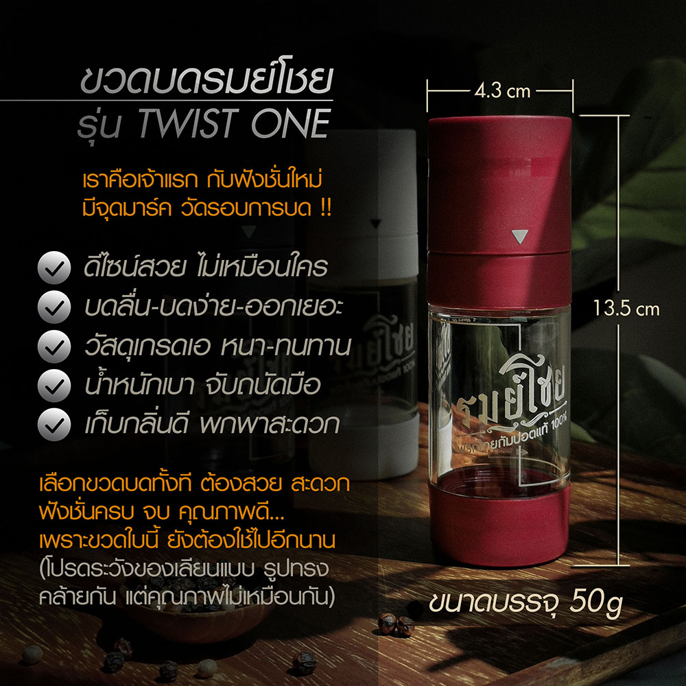 🔥 ขวดบดพริกไทย (รมย์โชย) ขนาดบรรจุ 50 กรัม