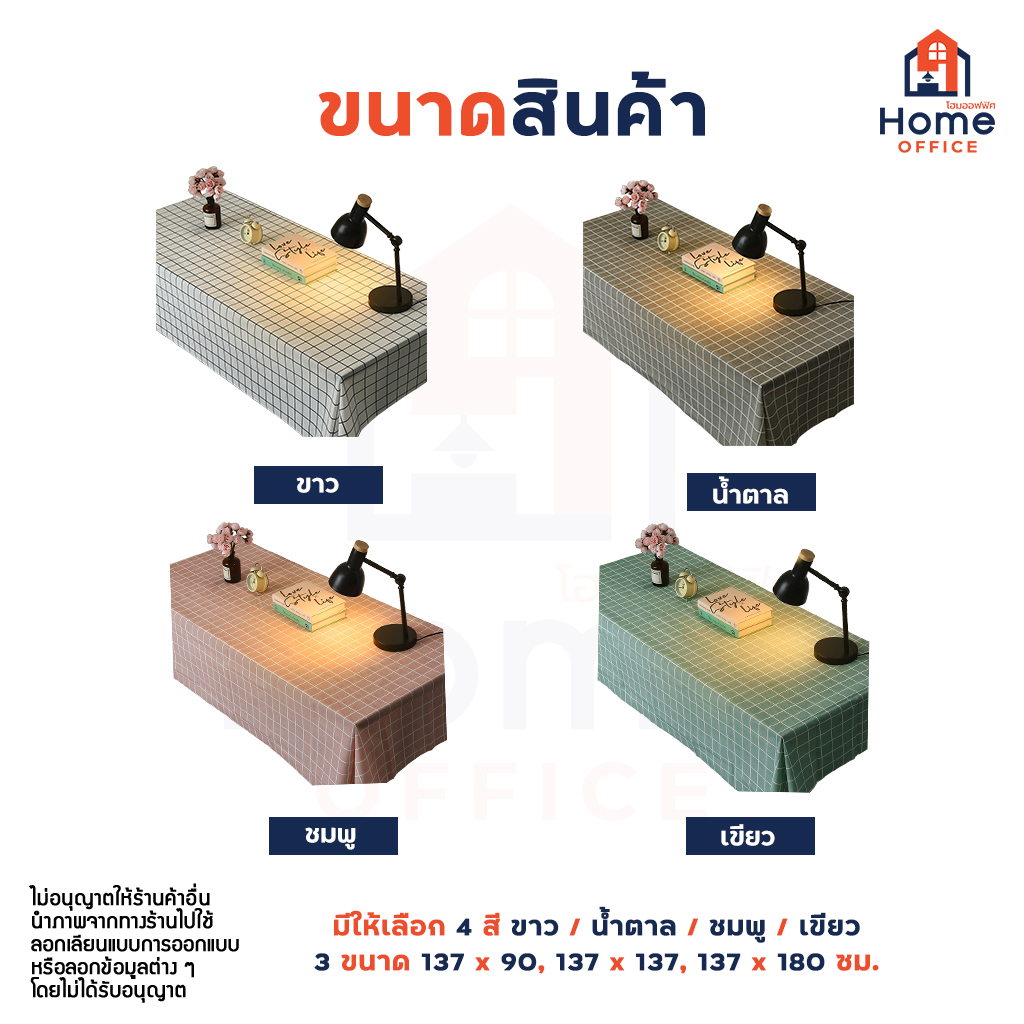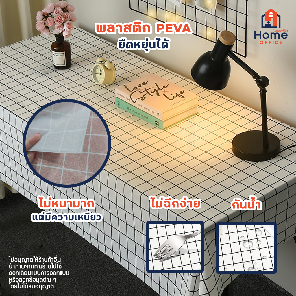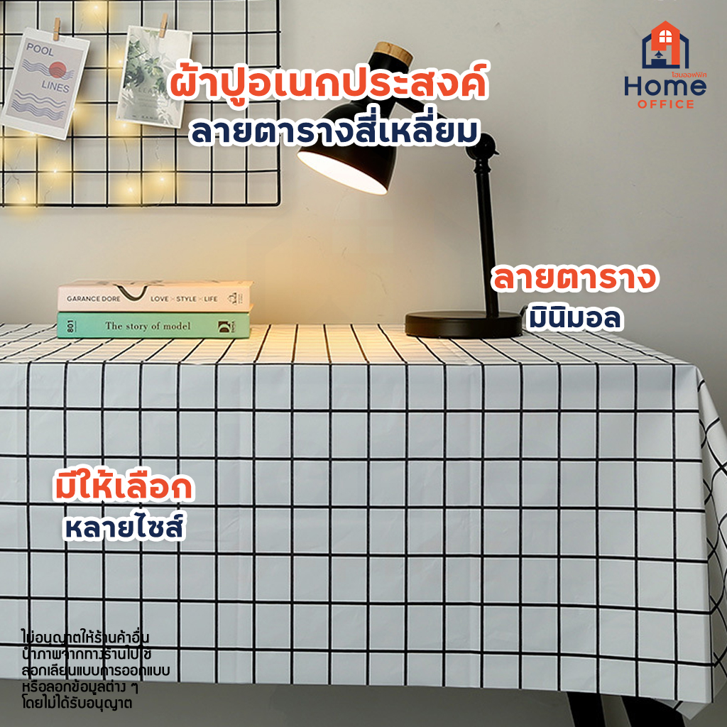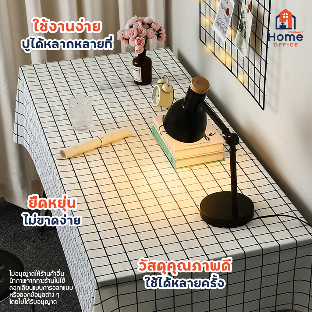 Home Office ผ้าปูอเนกประสงค์ (พลาสติก PVEA) ลายเส้นตารางสี่เหลี่ยม ผ้าปูพลาสติก กันน้ำ ไม่ขาดง่าย พลาสติกปูโต๊ะ หลายสี
