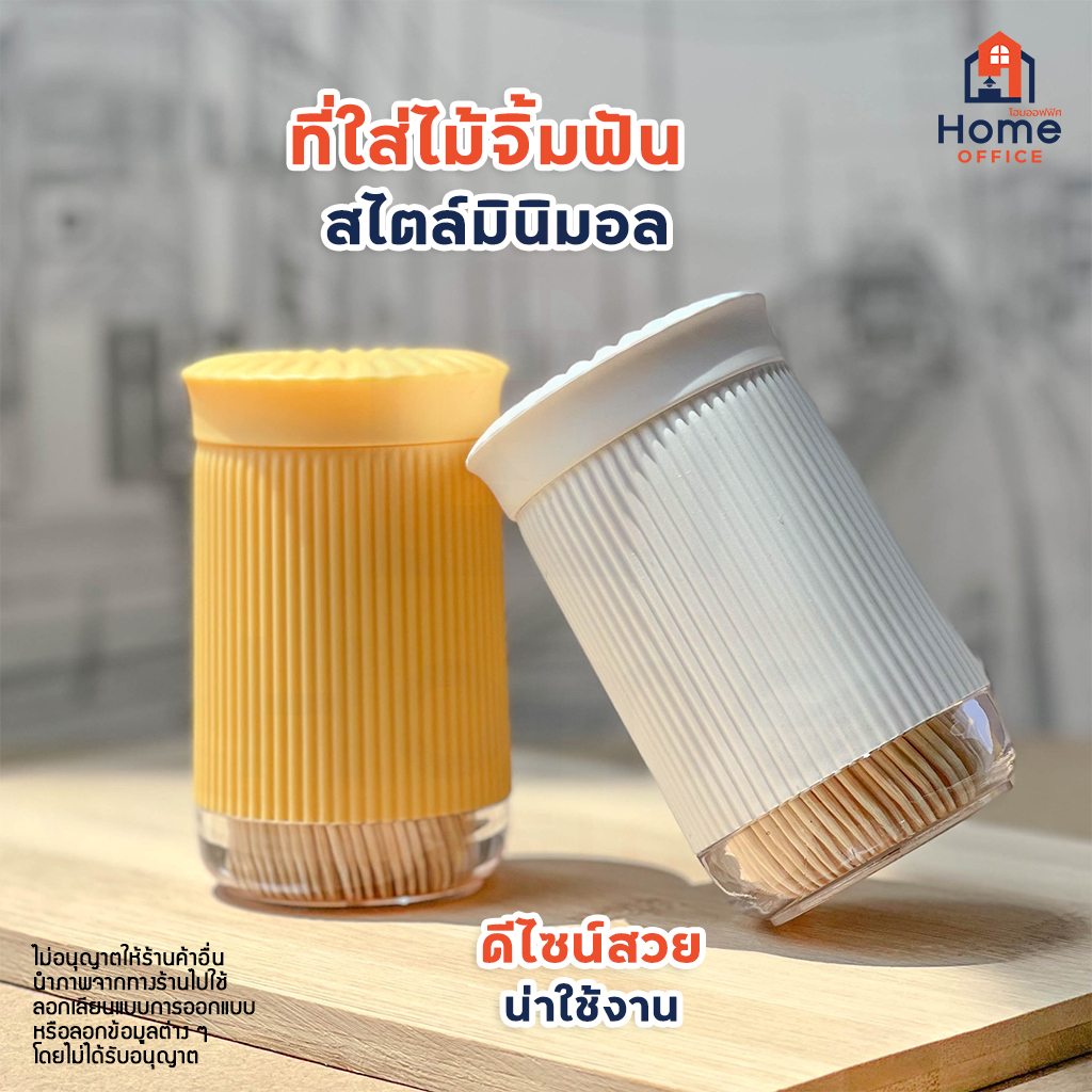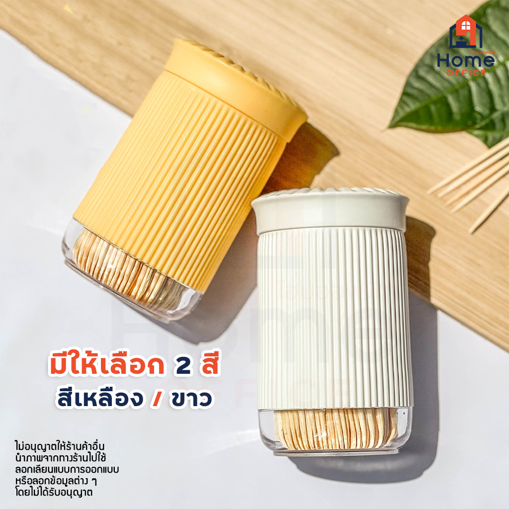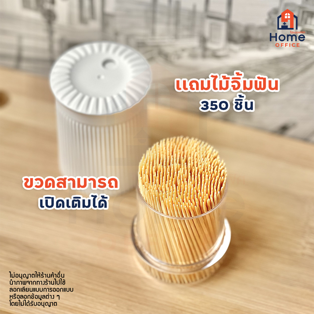 Home Office ที่ใส่ไม้จิ้มฟัน (มินิมอล) พร้อมไม้จิ้มฟัน 350 ชิ้น ขวดใส่ไม้จิ้มฟันพลาสติก ฝาเปิดแบบหมุน