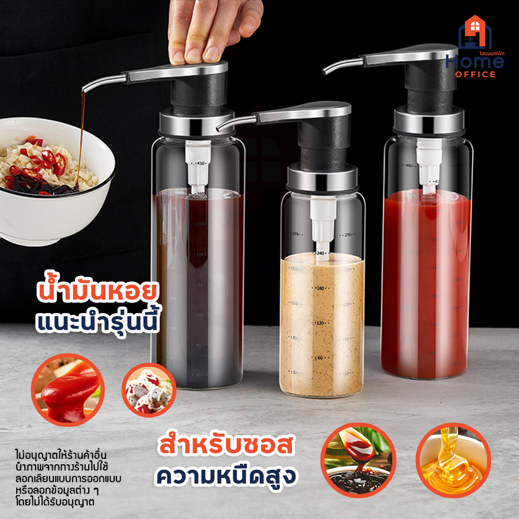 Home Office ขวดแก้วใส่ซอส (แบบหัวปั้ม) สแตนเลส 304 ขวดใส่น้ำมันหอย ซอสมะเขือเทศ ซอสพริก น้ำสลัด ขวดซอสหัวปั้มแบบสูญญากาศ