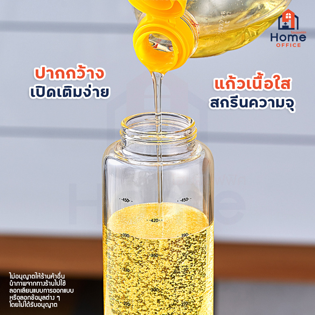 🟢 ปากขวดกว้าง สามารถเปิดเติมซอส น้ำมันใส่ขวดได้อย่างง่ายดาย ตัวขวดมีสกรีนตัวเลขบอกปริมาณ