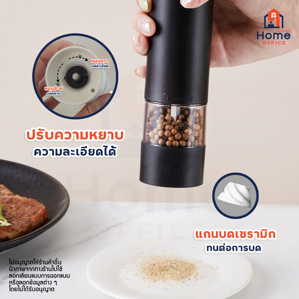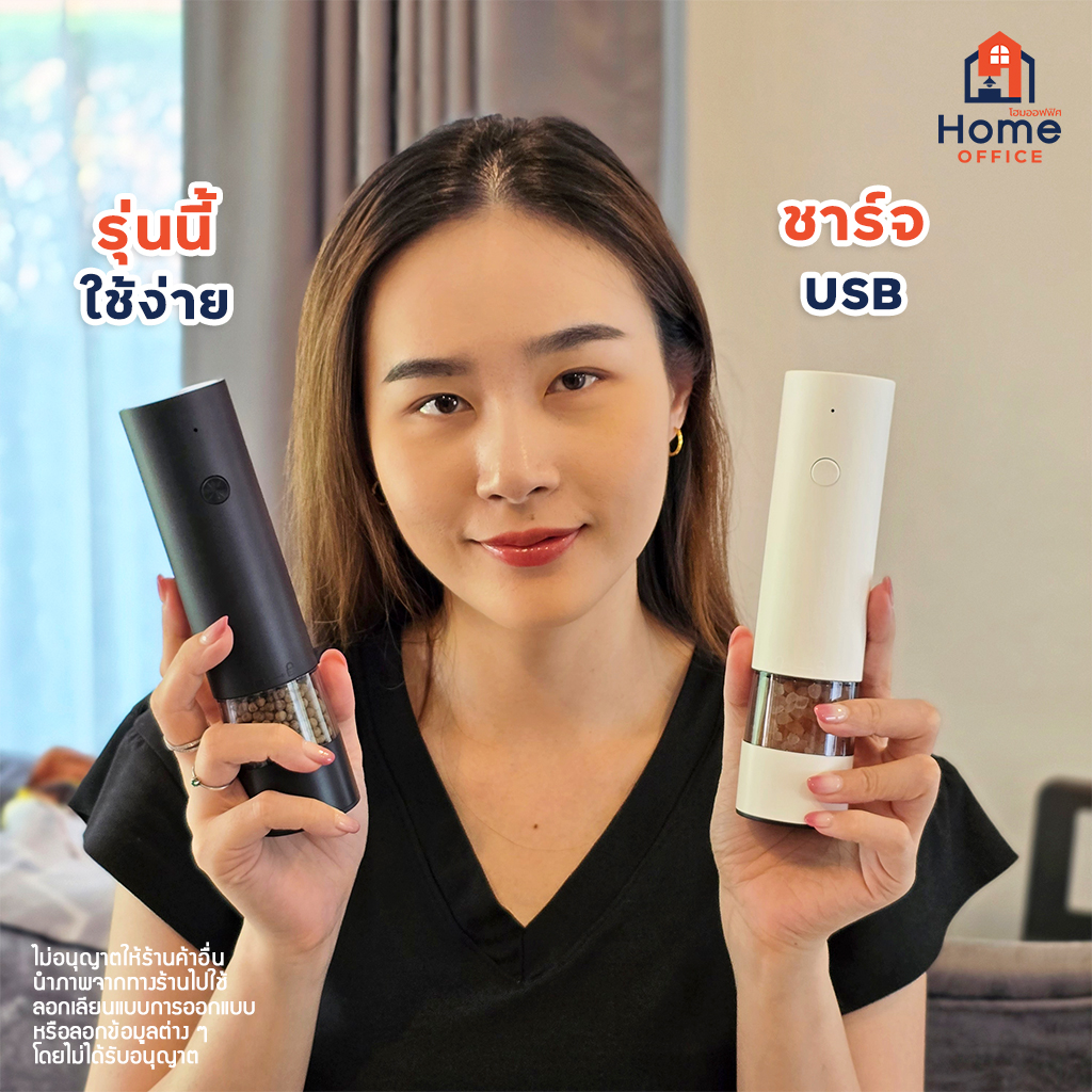 Home Office ขวดบดพริกไทยไฟฟ้า (ชาร์จ USB) หมุนบดอัตโนมัติ รุ่น SW-WG36U ขวดบดพริกไทยอัตโนมัติ พริกไทย เกลือ กัมปอต งา