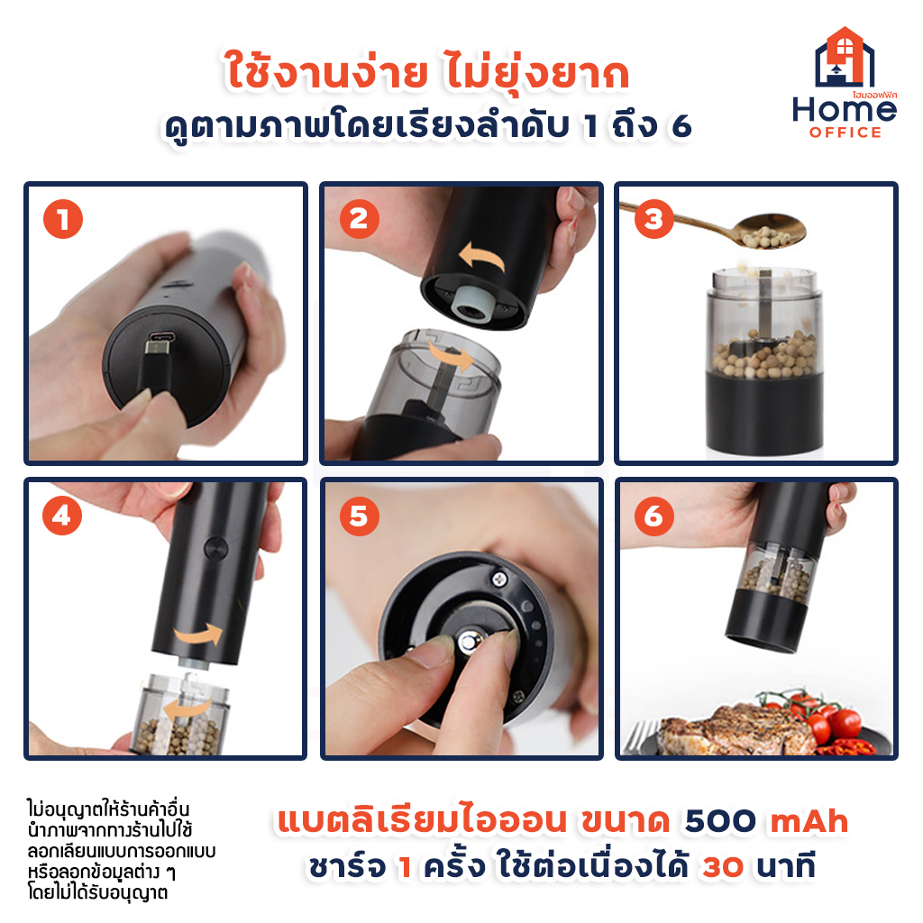 🔥 ขวดบดพริกไทยไฟฟ้าอัตโนมัติ ขนาดแบตเตอรี่ 500 mAh ชาร์จ 1 ครั้ง ใช้ได้ยาวนานต่อเนื่อง 30 นาที