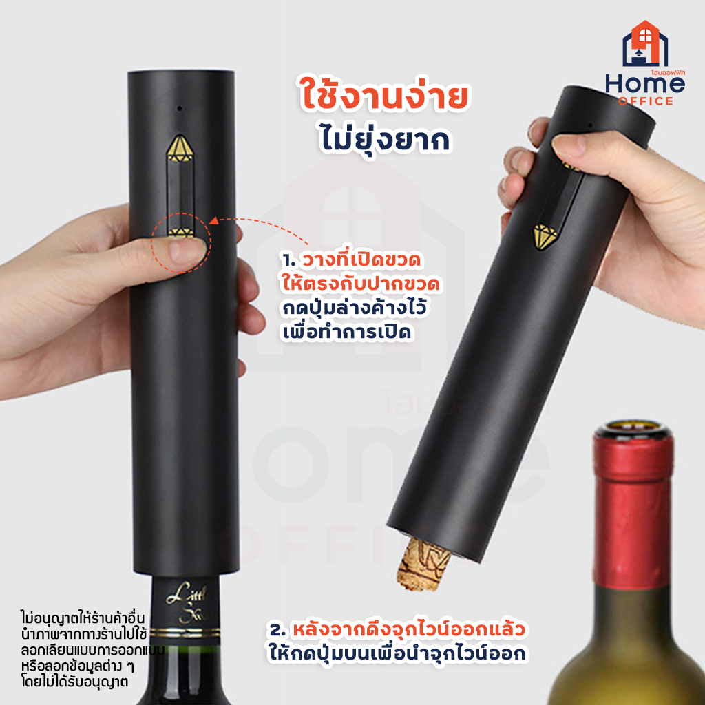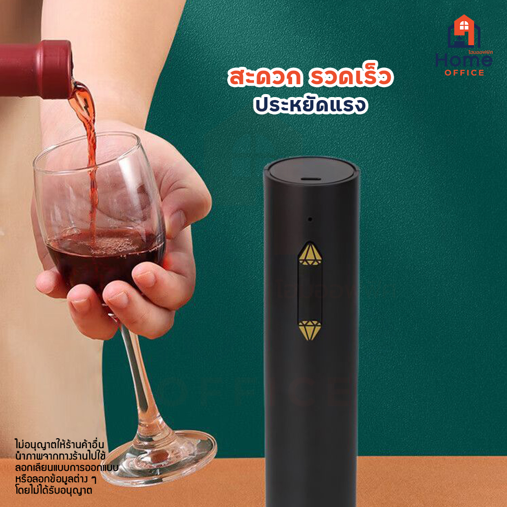 Home Office ที่เปิดขวดไวน์อัตโนมัติ (ชาร์จ USB) รุ่น SW-C005R ปุ่มเพชร ที่เปิดไวน์ไฟฟ้าอัตโนมัติ เปิดไวน์ เปิดจุกคอร์