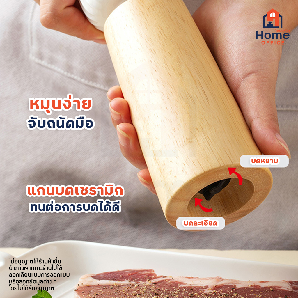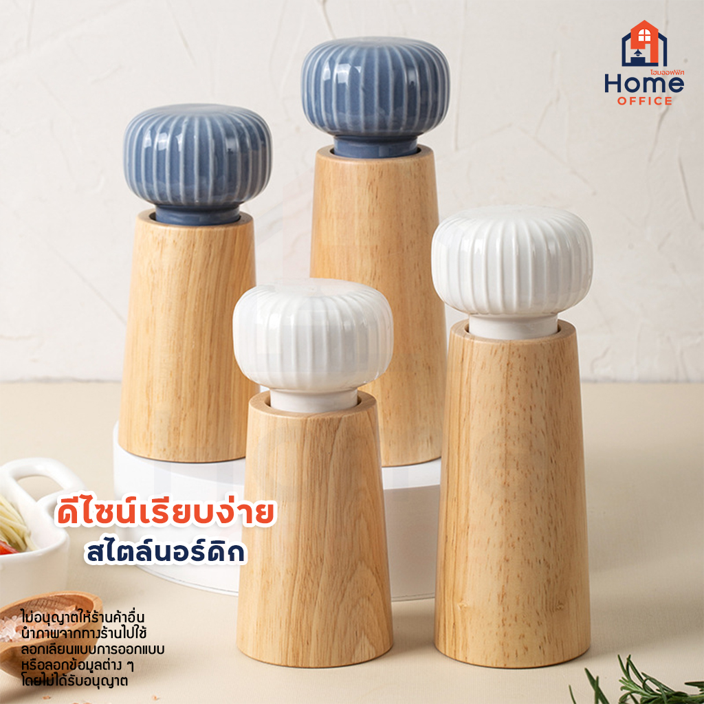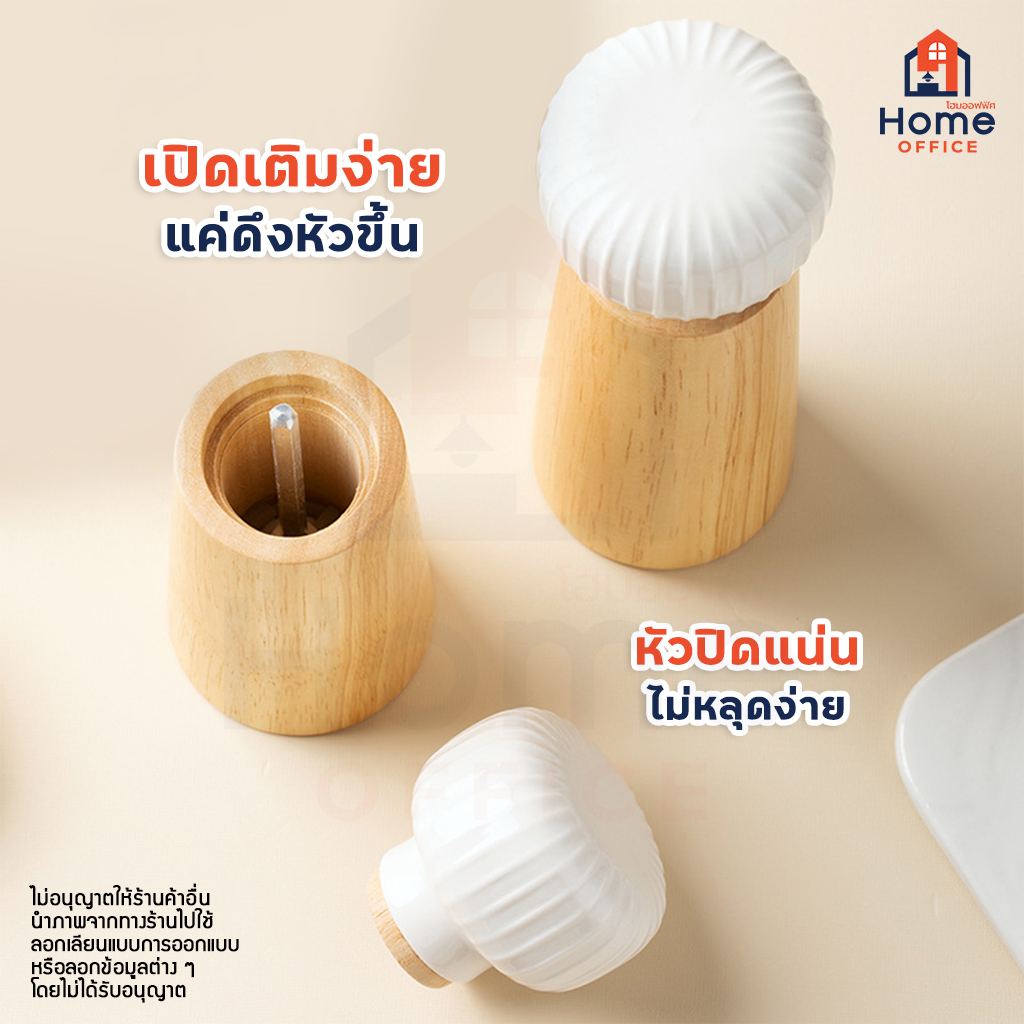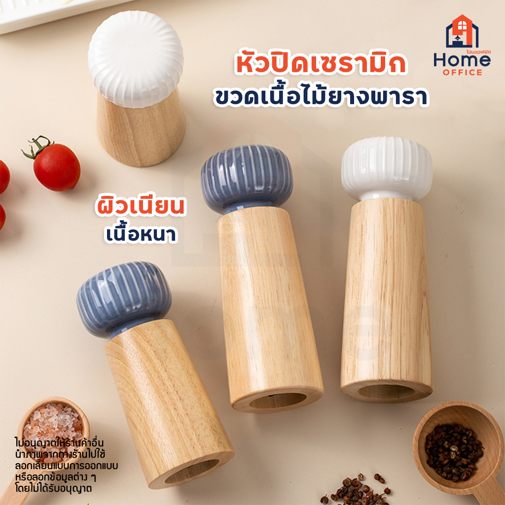 Home Office ขวดบดพริกไทย (หัวปิดเซรามิก) เนื้อไม้ สไตล์นอร์ดิก แกนบดเซรามิก ขวดบดพริกไทยไม้ เม็ดพริกไทย งา ถั่ว กัมปอต